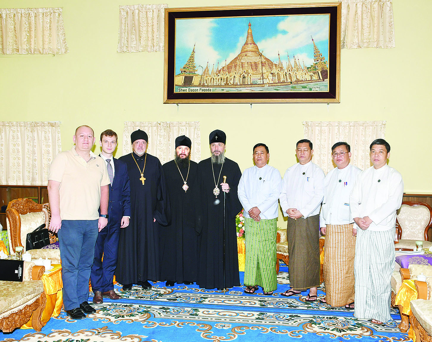 သာသနာရေးနှင့် ယဉ်ကျေးမှုဝန်ကြီးဌာန ဒုတိယဝန်ကြီး ဦးအေးထွန်းသည် ရုရှားဖက်ဒရေးရှင်းနိုင်ငံ အရှေ့တောင်အာရှဒေသလုံးဆိုင်ရာ အော်သိုဒေါ့ ခရစ်ယာန်ဘုန်းတော်ကြီး His Eminence Metropolitan Sergiy ဦးဆောင်သော ကိုယ်စားလှယ်အဖွဲ့အား ယနေ့နံနက် ၁၀ နာရီတွင် ရန်ကုန်မြို့ မရမ်းကုန်းမြို့နယ် ကမ္ဘာအေးဘုရားလမ်းရှိ သာသနာရေးနှင့်ယဉ်ကျေးမှုဝန်ကြီးဌာန (ရန်ကုန်) ရုံးခွဲဧည့်ခန်းမ၌ တွေ့ဆုံသည်။