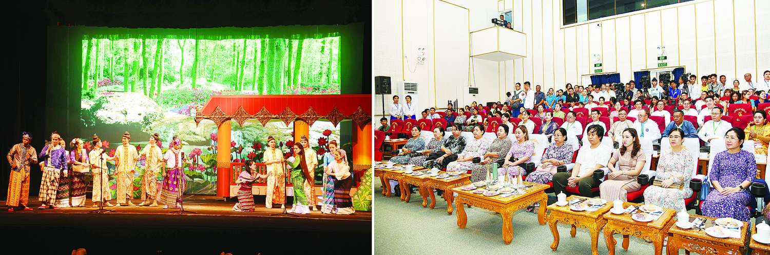 နိုင်ငံတော် စီမံအုပ်ချုပ်ရေးကောင်စီဥက္ကဋ္ဌ နိုင်ငံတော်ဝန်ကြီးချုပ်၏ဇနီးသည် ကောင်စီအတွင်းရေးမှူး၊ တွဲဖက်အတွင်းရေးမှူး၊ ကောင်စီအဖွဲ့ဝင်တို့၏ဇနီးများ၊ တပ်မတော်ကာကွယ်ရေးဦးစီးချုပ်ရုံးမှ တပ်မတော်အရာရှိကြီးများ၏ဇနီးများ၊ ပြည်ထောင်စုအဆင့်ပုဂ္ဂိုလ်များ၊ ဒုတိယဝန်ကြီးများ၊ အကဲဖြတ်ဒိုင်များနှင့်အတူ ဝါသနာရှင်အဆင့် (ပထမတန်း) “မဟော်သဓာ” ဇာတ်တော်ကြီးပြိုင်ပွဲတွင် မန္တလေးတိုင်းဒေသကြီးကိုယ်စားပြု စိန်မြန်မာအနုပညာအင်အားစု မဟော်သဓာဇာတ်တော်ကြီးအဖွဲ့က မူရင်းမဟော်သဓာဇာတ်တော်ကြီး၏ တီးလုံးတီးချက်များကို မြန်မာ့ဇာတ်သဘင်၏ ဆို ငို ပြော ပညာရပ်များ၊ အကအလှများနှင့် အနုပညာရသမြောက်ပေါင်းစပ်၍ သရုပ်ဖော်ယှဉ်ပြိုင်နေမှုကို ကြည့်ရှုအားပေးသည်။