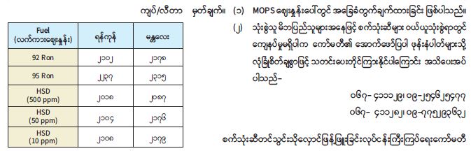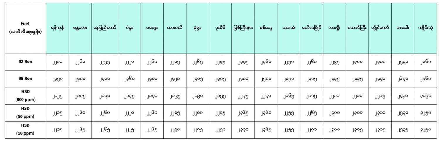 ရန်ကုန်မြို့နှင့်မန္တလေးမြို့အတွက် ရည်ညွှန်းလက်ကားဈေးနှုန်းများနှင့် ပြည်ထောင်စုနယ်မြေ နေပြည်တော်၊ တိုင်းဒေသကြီး/ပြည်နယ် မြို့တော်များအတွက် ရည်ညွှန်းလက်လီဈေးနှုန်းများ 11/22/2023