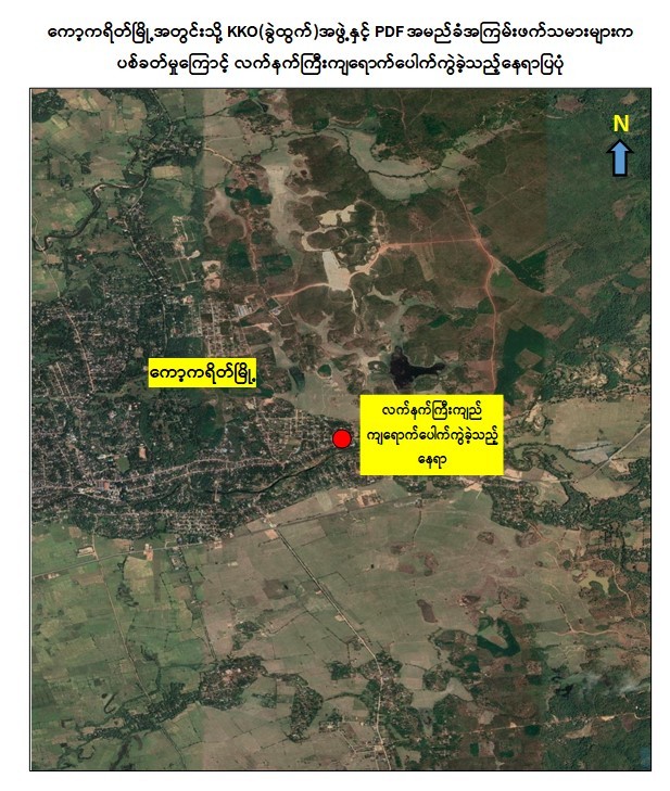 ဖြစ်စဉ်မှာ အကြမ်းဖက်သမားများက နိုဝင်ဘာလ ၂၀ ရက် ည ၁၀ နာရီခွဲခန့်တွင် ကော့ကရိတ်မြို့အတွင်း လုံခြုံရေးဆောင်ရွက်ပေးနေသည့် တပ်ဖွဲ့ဝင်များအား ကော့ကရိတ်မြို့၏ အရှေ့ဘက်မီတာ ၁၄၀၀ ခန့်အကွာရှိ ဆင်ကုန်းကျေးရွာသင်္ချိုင်းကုန်းဘက်မှနေ၍ လက်နက်ကြီးများဖြင့် ပစ်ခတ်တိုက်ခိုက်ခဲ့ရာ လက်နက်ကြီးကျည်များသည် ကော့ကရိတ်မြို့၊ အမှတ် (၂) ရပ်ကွက်၊ ဘုရင့်နောင်လမ်းရှိ ဦးထွန်းရင်၏နေအိမ်ပေါ်သို့ ကျရောက်ပေါက်ကွဲခဲ့သဖြင့် အပြစ်မဲ့အရပ်သားပြည်သူ ၂ ဦး သေဆုံးကာ ၁ ဦးဒဏ်ရာရရှိခဲ့ကြောင်း သိရှိရသည်။