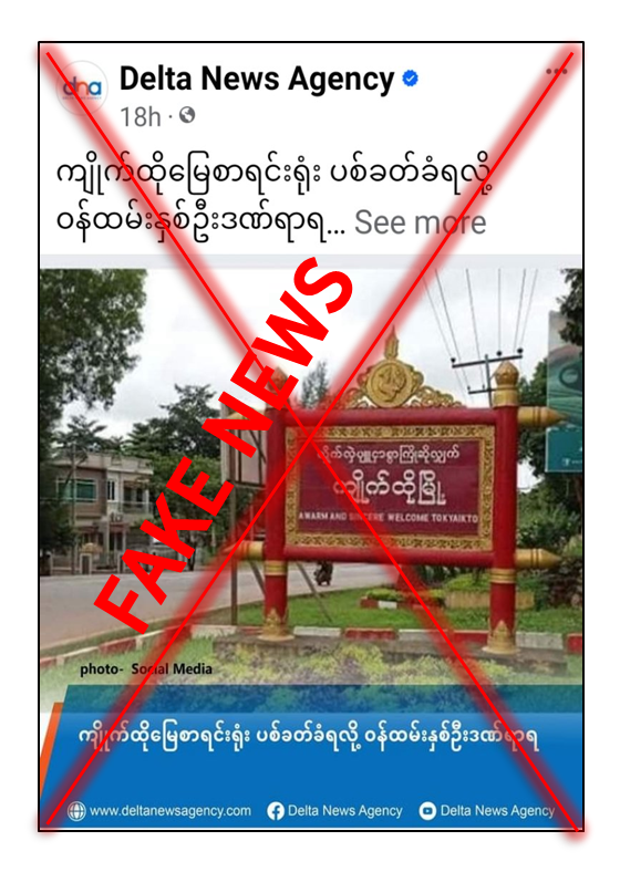 မွန်ပြည်နယ်၊ ကျိုက်ထိုမြို့နယ် မြေစာရင်းရုံးတွင် နိုဝင်ဘာလ ၂၈ ရက်နေ့ နံနက် ၁၀ နာရီခွဲချိန်ခန့်က လက်နက်ကြီးပစ်ခတ်ခံရမှုကြောင့် ဝန်ထမ်းနှစ်ဦး ထိခိုက်ဒဏ်ရာရရှိခဲ့သည်ဟု လူမှုကွန်ရက်စာမျက်နှာတွင် သတင်းမှားဖြန့်ဝေလျက်ရှိသည်ကို တွေ့ရှိရပါသည်။