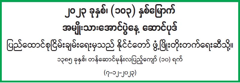 ရာသီတုပ်ကွေးရောဂါ ကြိုတင်ကာကွယ်ရေးနှင့်ပတ်သက်၍ ပြည်သူလူထုသိရှိလိုက်နာဆောင်ရွက်နိုင်ရန် သတင်းထုတ်ပြန်ကြေညာချက်