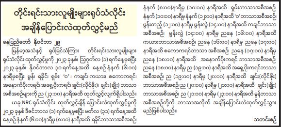 တိုင်းရင်းသားလူမျိုးများရုပ်သံလိုင်း အချိန်ပြောင်းလဲထုတ်လွှင့်မည်