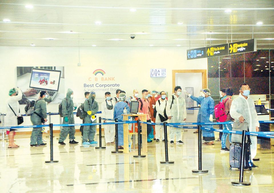 ၎င်းတို့ ရန်ကုန်အပြည်ပြည်ဆိုင်ရာ လေဆိပ်သို့ ရောက်ရှိချိန်တွင် လူဝင်မှုကြီးကြပ်ရေး၊ ကျန်းမာရေး စိစစ်ရေးနှင့် ၂၁ ရက်တာ အသွားအလာ ကန့်သတ်နေထိုင်ရေးတို့ကို အလုပ်သမား၊ လူဝင်မှုကြီးကြပ် ရေးနှင့် ပြည်သူ့ အင်အားဝန်ကြီးဌာန၊ ကျန်းမာရေးနှင့် အားကစားဝန်ကြီးဌာနနှင့် ရန်ကုန်တိုင်း ဒေသကြီး အစိုးရအဖွဲ့တို့မှ သက်ဆိုင်ရာအခန်းကဏ္ဍအလိုက် တာဝန်ယူ ဆောင်ရွက်ပေးသည်။