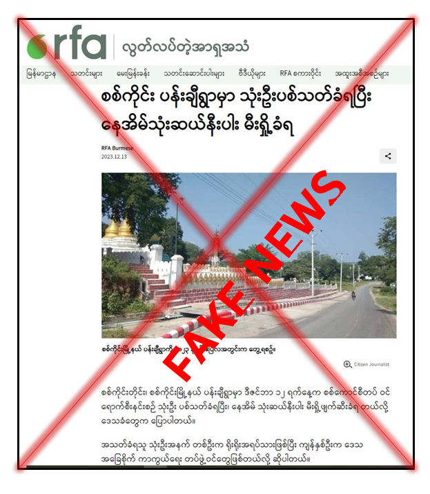 စစ်ကိုင်းတိုင်းဒေသကြီး၊ စစ်ကိုင်းမြို့နယ်၊ အုန်းတောကျေးရွာအုပ်စု၊ ပန်းချီကျေးရွာကို လုံခြုံရေးတပ်ဖွဲ့ဝင်များက ဝင်ရောက်စီးနင်းစဉ် သုံးဦး ပစ်သတ်ခံရပြီး နေအိမ် ၃၀ ကျော်အား မီးရှို့ဖျက်ဆီးခဲ့သည်ဟု တရားမဝင်ပြည်ဖျက်မီဒီယာများက မဟုတ်မမှန် သတင်းအမှားများကို လူမှုကွန်ရက်စာမျက်နှာများတွင်ရေးသားဖြန့်ဝေလျက်ရှိသည်ကို တွေ့ရှိရသည်။