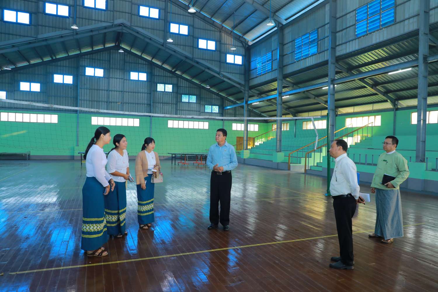 ထို့နောက် ဖျာပုံမြို့နယ် ခရိုင်အားကစားခန်းမနှင့် ဘိုကလေးမြို့နယ် ပြည်သူ့အားကစားကွင်းတို့ကို သွားရောက်ကြည့်ရှုစစ်ဆေးပြီး အားကစားကွင်း သန့်ရှင်းရေးနှင့် စိမ်းလန်းစို ပြည်ရေးလုပ်ငန်းများ ပုံမှန်ဆောင်ရွက်သွားရန်နှင့် အားကစားရုံ ရေရှည်တည်တံ့စေရေး ထိန်းသိမ်းဆောင်ရွက်သွားရန် မှာကြား၍ အားကစားပစ္စည်းများ ထောက်ပံ့ပေးအပ်ကာ ဝန်ထမ်းများနှင့် ရင်းရင်းနှီးနှီးတွေ့ဆုံ၍ လိုအပ်သည်များ ဖြည့်ဆည်းဆောင်ရွက်ပေးသည်။