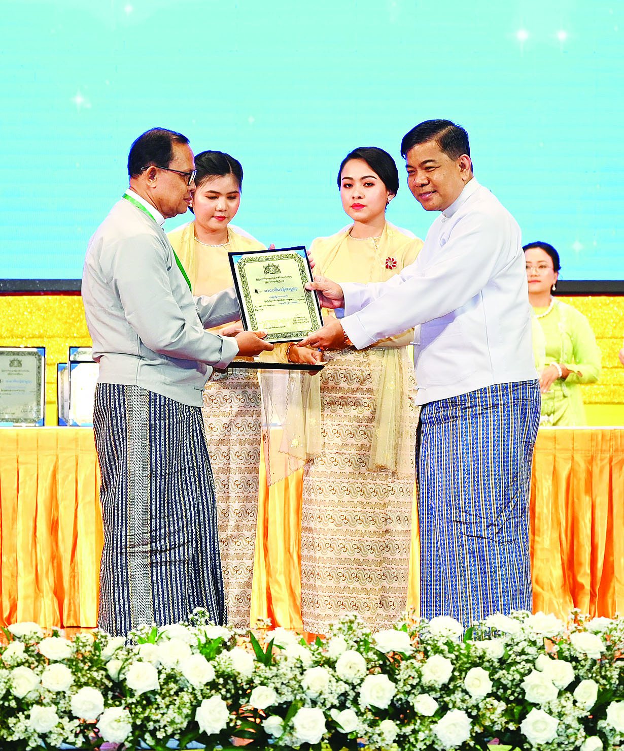 ၂၀၂၂ ခုနှစ်အတွက် အမျိုးသားစာပေတစ်သက်တာဆု၊ အမျိုးသားစာပေဆုနှင့်စာပေဗိမာန်စာမူဆု ဆုနှင်းသဘင်အခမ်းအနားကို ယနေ့နံနက်ပိုင်းတွင်နေပြည်တော်ရှိ အပြည်ပြည်ဆိုင်ရာကွန်ဗင်းရှင်းဗဟိုဌာန-၂ ၌ ကျင်းပပြုလုပ်ရာ နိုင်ငံတော်စီမံအုပ်ချုပ်ရေးကောင်စီဥက္ကဋ္ဌ နိုင်ငံတော်ဝန်ကြီးချုပ် ဗိုလ်ချုပ်မှူးကြီးမင်းအောင်လှိုင်နှင့်ဇနီးဒေါ်ကြူကြူလှတို့ တက်ရောက်၍ စာပေဆုများ ပေးအပ်ချီးမြှင့်သည်။