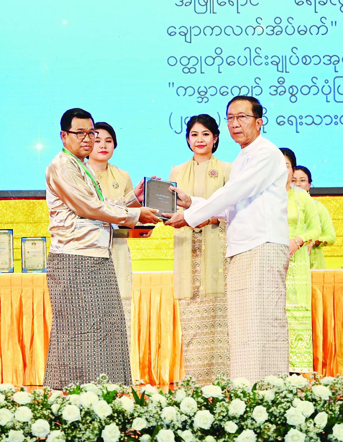 ထို့နောက် ကောင်စီတွဲဖက်အတွင်းရေးမှူး ဒုတိယဗိုလ်ချုပ်ကြီး ရဲဝင်းဦး၊ ကောင်စီဝင်များဖြစ်ကြသည့် ဗိုလ်ချုပ်ကြီး မြထွန်းဦး၊ ဗိုလ်ချုပ်ကြီး တင်အောင်စန်း၊ ဗိုလ်ချုပ်ကြီး မောင်မောင်အေး၊ ဒုတိယဗိုလ်ချုပ်ကြီး ရာပြည့်၊ ဒုတိယဗိုလ်ချုပ်ကြီး ညိုစော၊ ပြည်ထောင်စုဝန်ကြီး ဦးဝင်းရှိန်နှင့် ဦးမောင် မောင်အုန်းတို့က အမျိုးသားစာပေဆု ရရှိသူများနှင့် စာပေဗိမာန်စာမူဆု ရရှိသူများကို ဆုများပေးအပ် ချီးမြှင့်ကြသည်။