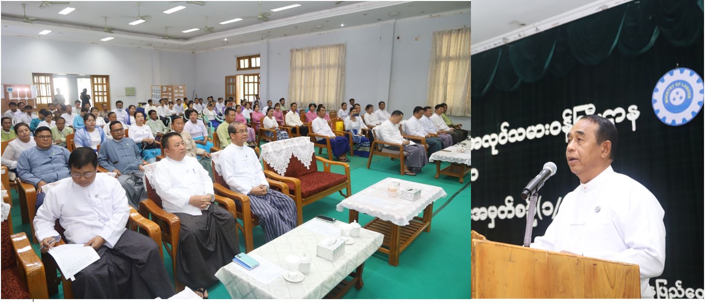အလုပ်သမားဝန်ကြီးဌာနနှင့် အားကစားနှင့်လူငယ်ရေးရာဝန်ကြီးဌာနတို့ ပူးပေါင်းဖွင့်လှစ်သော လျှပ်စစ်သွယ်တန်းတပ်ဆင်ခြင်းသင်တန်း (၁/၂၀၂၃) သင်တန်းဆင်းပွဲအခမ်းအနားကို ယနေ့နံနက် ၁၀ နာရီတွင် ပြည်ထောင်စုနယ်မြေ နေပြည်တော် ဇမ္ဗူသီရိမြို့နယ် နေပြည်တော်ကောင်စီဝင်းအတွင်းရှိ အထွေထွေအုပ်ချုပ်ရေးဦးစီးဌာန စုပေါင်းအစည်းအဝေးခန်းမ၌ ကျင်းပရာ အလုပ်သမားဝန်ကြီးဌာန ပြည်ထောင်စုဝန်ကြီး ဦးမြင့်နောင်၊ ဒုတိယဝန်ကြီးများ၊ အမြဲတမ်းအတွင်းဝန်၊ ညွှန်ကြားရေးမှူးချုပ်များ၊ နေပြည်တော်ကောင်စီအဖွဲ့ဝင်များ၊ တာဝန်ရှိသူများ၊ သင်တန်းနည်းပြများ၊ သင်တန်းသားများ တက်ရောက်ကြသည်။