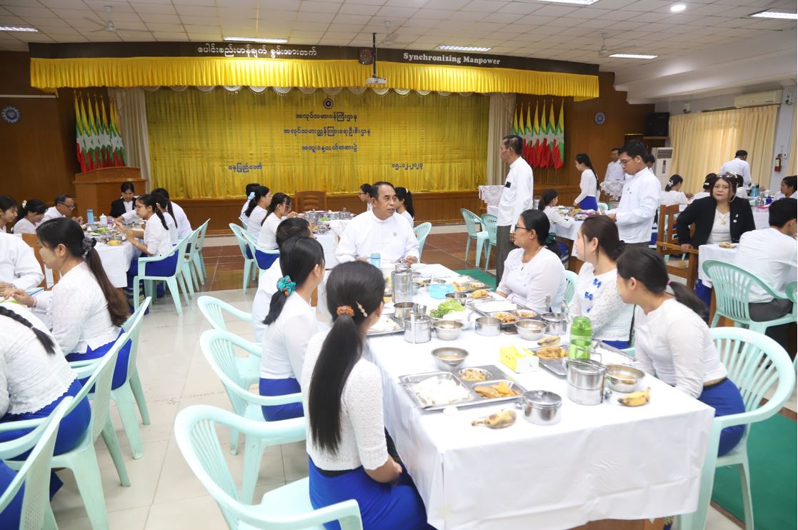 နေ့လယ်စာစားပွဲသို့ ပြည်ထောင်စုဝန်ကြီး ဦးမြင့်နောင်၊ ဒုတိယဝန်ကြီး ဦးဝင်းရှိန်၊ အမြဲတမ်းအတွင်းဝန်၊ ညွှန်ကြားရေးမှူးချုပ်များ၊ ဒုတိယညွှန်ကြားရေးမှူးချုပ်များနှင့် အရာထမ်း/အမှုထမ်းများ တက်ရောက်ကြသည်။