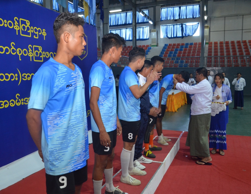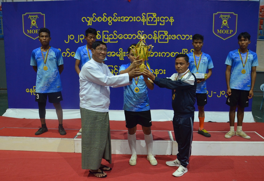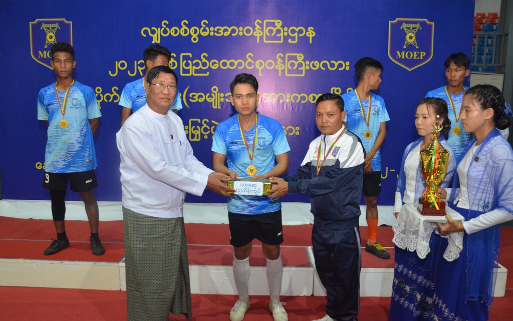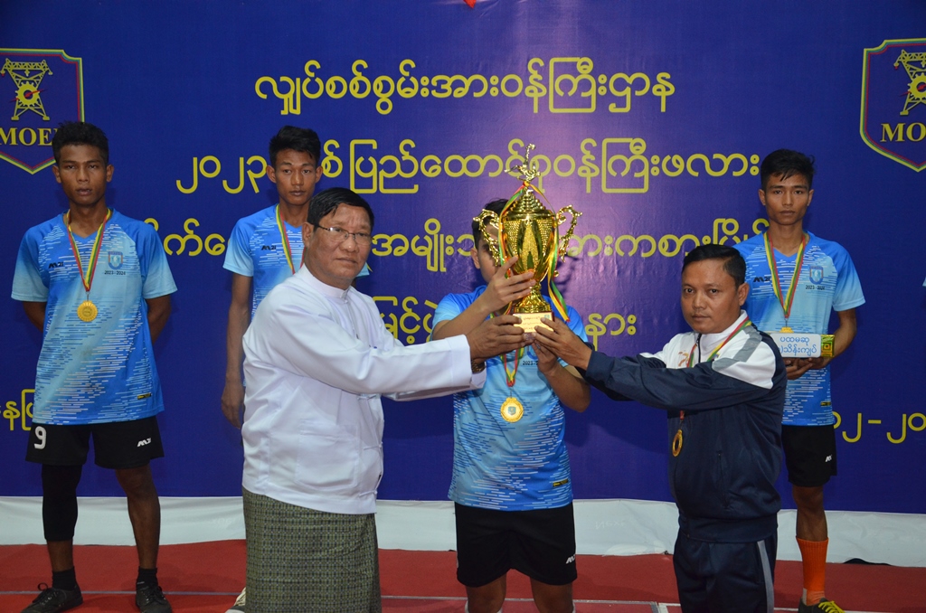 မွန်းလွဲပိုင်းတွင် ပြည်ထောင်စုဝန်ကြီးသည် ဝဏ္ဏသိဒ္ဓိအားကစားကွင်း၊ လက်ဝှေ့အားကစားပြိုင်ပွဲရုံ၌ ကျင်းပသည့် ၂၀၂၃ ခုနှစ် လျှပ်စစ်စွမ်းအားဝန်ကြီးဌာန ပြည်ထောင်စုဝန်ကြီးဖလား ပိုက်ကျော်ခြင်း (အမျိုးသား) အားကစားပြိုင်ပွဲ ဗိုလ်လုပွဲစဉ် ယှဉ်ပြိုင်နေမှုကို ကြည့်ရှုအားပေးပြီး ဆုရရှိသည့်အသင်းများကို ဂုဏ်ပြုဆုတံဆိပ်နှင့် ဆုငွေများ ပေးအပ်ချီးမြှင့်ခဲ့ကြောင်း သိရသည်။