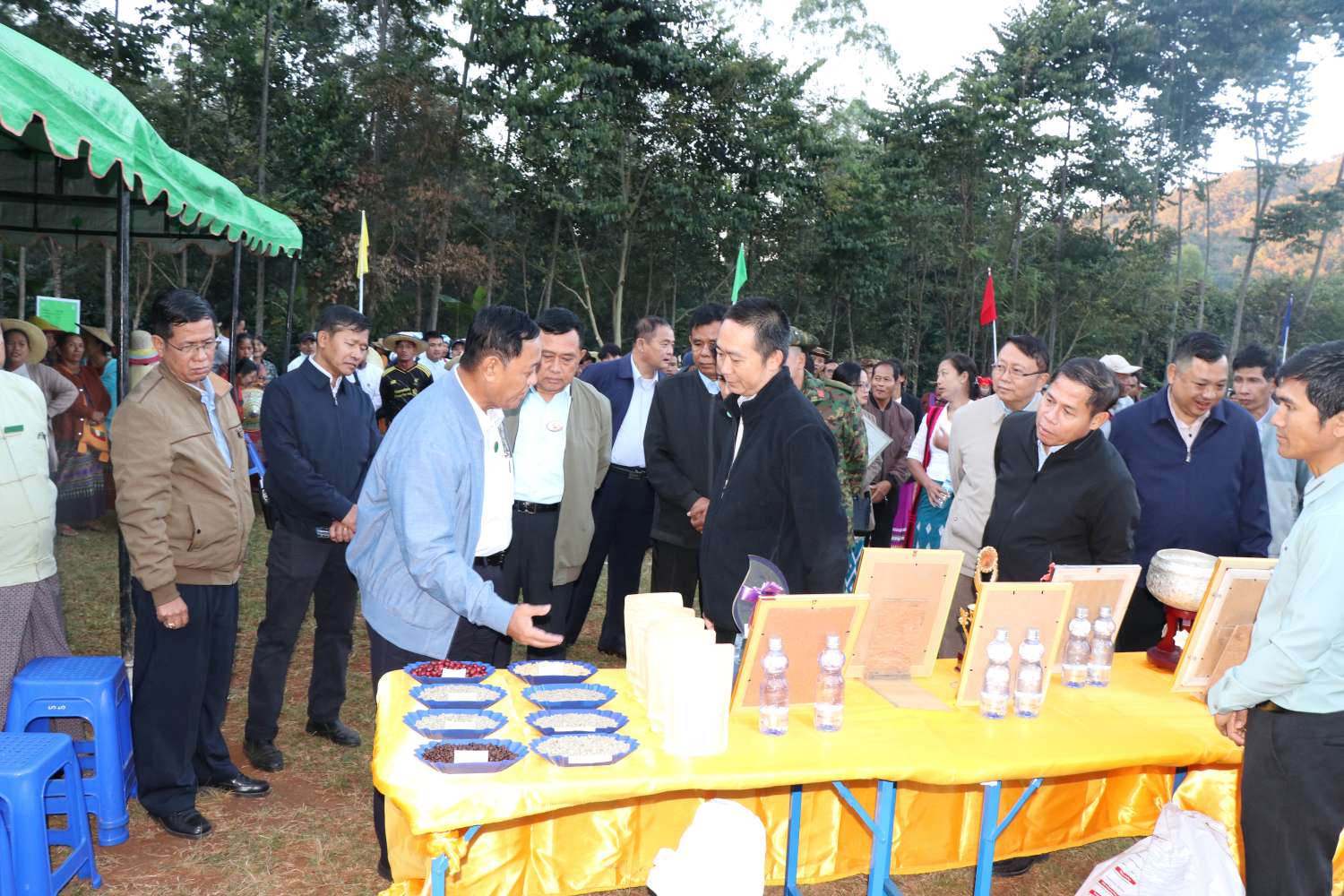 ထို့နောက် ပြည်ထောင်စုဝန်ကြီး၊ ပြည်နယ်ဝန်ကြီးချုပ်နှင့်အဖွဲ့သည် ဟိုပုံးမြို့နယ်၊ ဟိုဟွေးကျေးရွာသို့ ရောက်ရှိပြီး ကျေးရွာယာယီရှင်းလင်းဆောင်၌ Green Gold ကော်ဖီစိုက်ပျိုးရေးနှင့် အထွေထွေလုပ်ငန်း သမဝါယမအသင်းလီမိတက်အမှုဆောင်များ၊ အသင်းသားများ၊ ဒေသခံပြည်သူများနှင့်တွေ့ဆုံ၍ ကော်ဖီစိုက်ပျိုးထုတ်လုပ်သော သမဝါယမအသင်းသားများနှင့် ကော်ဖီစိုက်တောင်သူများ၏ အခက်အခဲများ၊ လိုအပ်ချက်များကို အတတ်နိုင်ဆုံးကူညီဆောင်ရွက်ပေးလျက်ရှိကြောင်း၊ အမှန်တကယ်လုပ်ငန်း လုပ်ကိုင်သူများအတွက် အကျိုးရှိအောင် ကူညီဆောင်ရွက်ပေးသွားမည်ဖြစ်ကြောင်း ပြောကြားသည်။