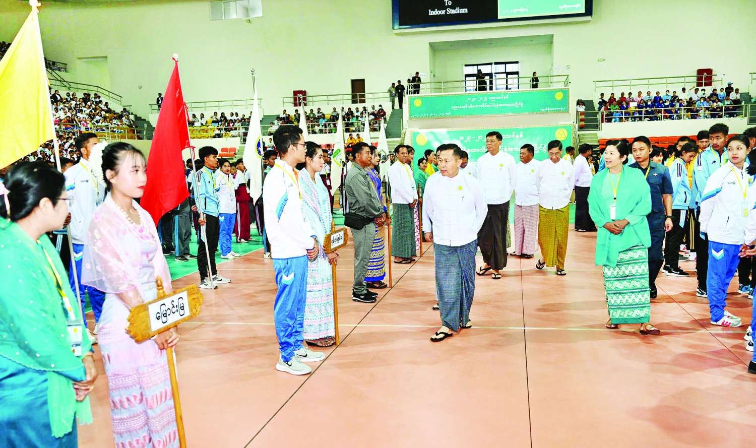 အခမ်းအနားသို့ နိုင်ငံတော်စီမံအုပ်ချုပ်ရေးကောင်စီအဖွဲ့ဝင်များ၊ ပြည်ထောင်စုအဆင့်ပုဂ္ဂိုလ်များ၊ ပြည်ထောင်စုဝန်ကြီးများ၊ တပ်မတော်မှ အဆင့်မြင့်အရာရှိကြီးများ၊ ဒုတိယဝန်ကြီးများ၊ အမြဲတမ်းအတွင်းဝန်များ၊ ညွှန်ကြားရေးမှူးချုပ်များနှင့် တာဝန်ရှိသူများ၊ ပါမောက္ခချုပ်များ၊ ပညာရေးဒီဂရီ ကောလိပ်အသီးသီးမှ ကျောင်းအုပ်ကြီးများ၊ အားကစားအဖွဲ့ခေါင်းဆောင်များ၊ အားကစားနည်းအလိုက် အုပ်ချုပ်သူနည်းပြများ၊ အားကစားမောင်မယ် ကျောင်းသား ကျောင်းသူများ တက်ရောက်ကြသည်။