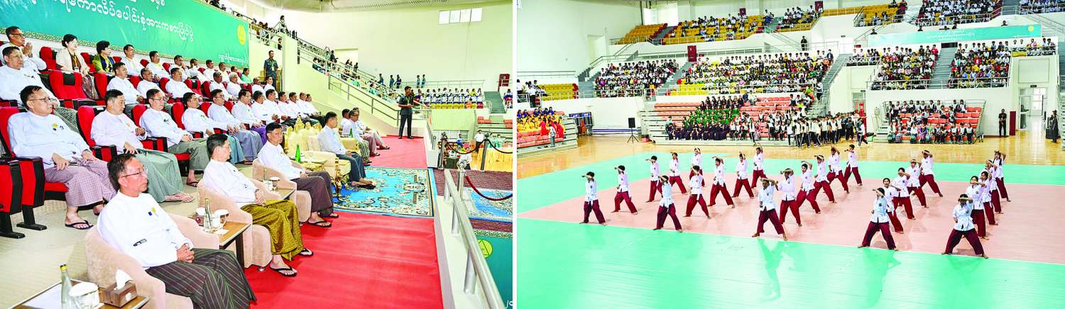 ဆက်လက်၍ နိုင်ငံတော်စီမံအုပ်ချုပ်ရေးကောင်စီဒုတိယဥက္ကဋ္ဌ ဒုတိယဝန်ကြီးချုပ်သည် အခမ်းအနားသို့ တက်ရောက်လာကြသူများနှင့်အတူ မိတ္ထီလာပညာရေးဒီဂရီကောလိပ်၊ လှည်းကူးပညာရေးဒီဂရီကောလိပ်နှင့် တောင်ငူပညာရေးဒီဂရီကောလိပ်တို့မှ ကျောင်းသား ကျောင်းသူများက Physical Fitness Dance ၊ မြန်မာ့သိုင်း၊ ပဝါက၊ မြန်မာ့ခြင်းဝိုင်းနှင့် အေရိုးဗစ်သရုပ်ပြသမှုတို့ကို ကြည့်ရှုအားပေးခဲ့ကြသည်။
