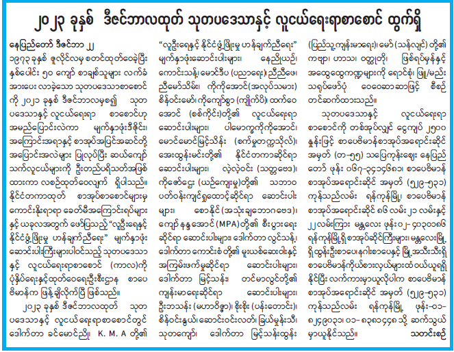 ၂၀၂၃ ခုနှစ် ဒီဇင်ဘာလထုတ် သုတပဒေသာနှင့် လူငယ်ရေးရာစာစောင် ထွက်ရှိ