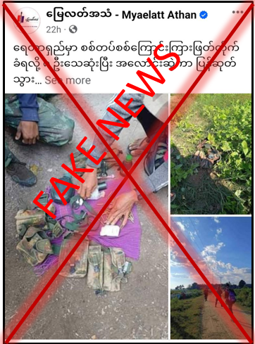 ပဲခူးတိုင်း၊ ရေတာရှည်မြို့နယ်၊ ကဲလင်းဆိပ်ကျေးရွာအနီးတွင် ဒီဇင်ဘာလ ၂၄ ရက်နံနက်ပိုင်းက တပ်မတော်စစ်ကြောင်းတစ်ခုအား အကြမ်းဖက်သမားများမှ ကြားဖြတ်တိုက်ခိုက်ခဲ့ပြီး တပ်မတော်သား ၈ ဦး ကျဆုံးခဲ့ကြောင်း Myaelatt Athan က သတင်းတု၊ သတင်းမှားများကို လူမှုကွန်ရက်စာမျက်နှာပေါ်တွင် ရေးသားဖြန့်ဝေလျက်ရှိသည်ကို တွေ့ရှိရသည်။