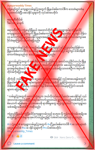 တရားမဝင်ပြည်ဖျက် အကြမ်းဖက်အားပေးမီဒီယာများသည် အခြေအမြစ်မရှိသည့် သတင်းတု၊ သတင်းမှားမျာကို လုပ်ကြံရေးသား၍ တည်ငြိမ်အေးချမ်းမှုပျက်ပြားစေရန်နှင့် ဒေသခံပြည်သူများ အထင်အမြင်လွဲမှားစေရန် လုပ်ကြံသတင်းတု၊ သတင်းမှားများကို လှုမှုကွန်ရက်စာမျက်နှာများတွင် ဖြန့်ဝေနေခြင်းသာဖြစ်ကြောင်း သတင်းရရှိသည်။