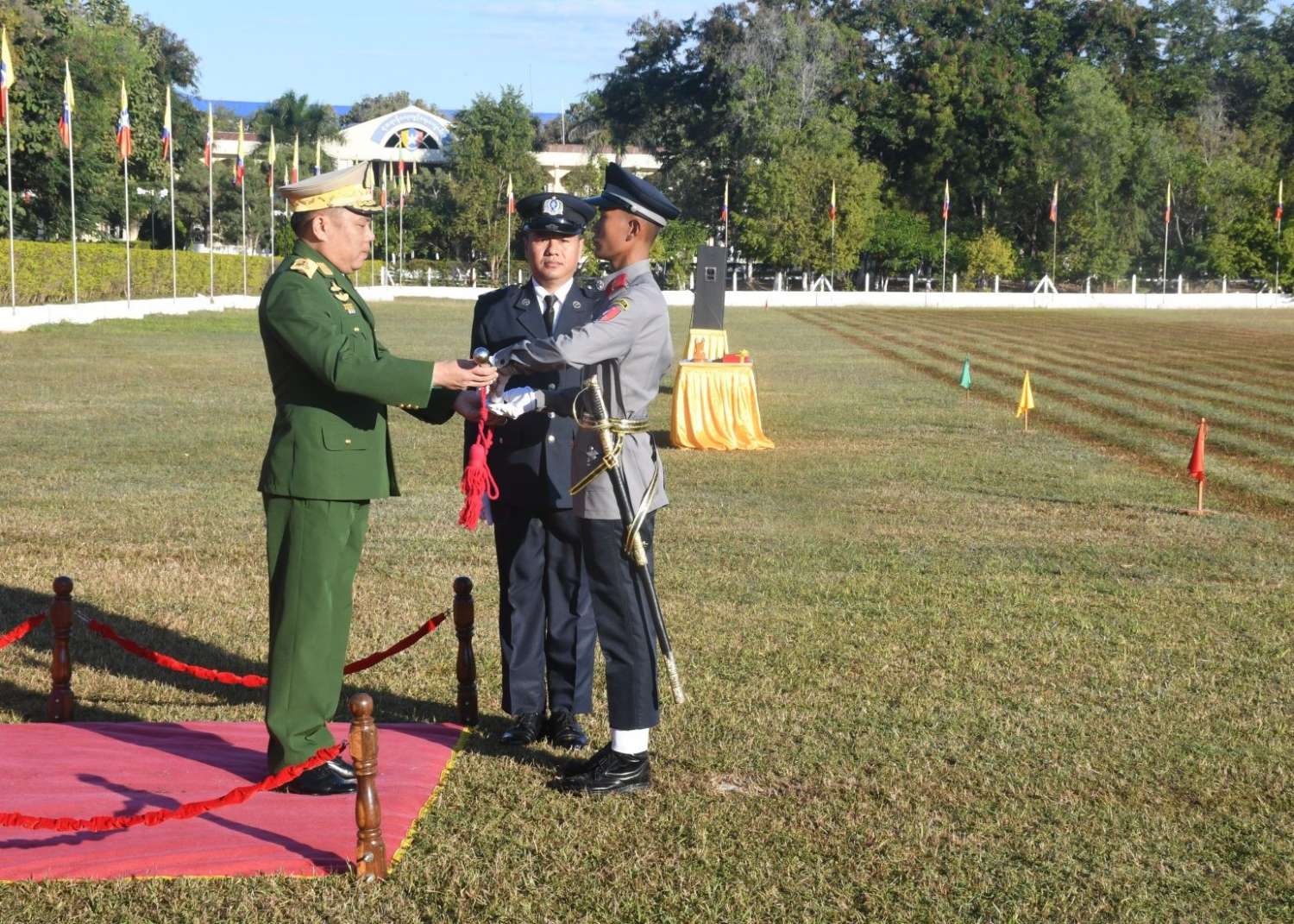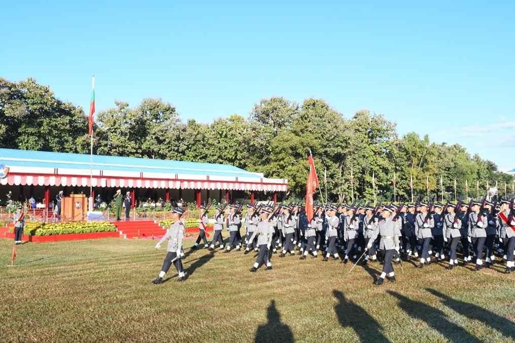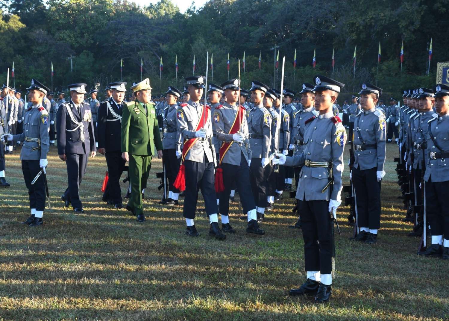 ရဲတပ်ဖွဲ့ဝင်တိုင်း စွမ်းရည်ပြည့်ဝထက်မြက်နေစေရန်အတွက် “လေ့လာ၊ လေ့ကျင့်၊ လိုက်နာ” ဆိုသည့် လေ့ကျင့်ရေးမှုဝါဒနှင့်အညီ ပြောင်းလဲတိုးတက်လာသည့် ရဲလုပ်ငန်းစနစ်များ၊ စစ်နည်းဗျူဟာများနှင့် စစ်အတတ်ပညာများကို စဉ်ဆက်မပြတ်လေ့လာနေဖို့လိုအပ်ကြောင်း၊ တပ်ဖွဲ့ဝင်အားလုံး လေ့ကျင့်သားပြည့်ဝနေစေရန် တပ်ဖွဲ့အလိုက် တစ်ဦးချင်းကိုင်တွယ်ရမည့်လက်နက်နှင့် ရဲတပ်ဖွဲ့သုံးကိရိယာများကို ကျွမ်းကျင်ပိုင်နိုင်ရေးလိုအပ်သည့် လေ့ကျင့်မှုများကို စဉ်ဆက်မပြတ်ဆောင်ရွက် နေရမှာဖြစ်ကြောင်း၊ ဆန်းသစ်ပြောင်းလဲတိုးတက်နေမှုနှင့်အညီ လိုက်ပါဆောင်ရွက်နိုင်ရန် အင်္ဂလိပ်ဘာသာစကားအပါအဝင် အခြားဘာသာစကားများ၊ ကွန်ပျူတာ၊ အင်တာနက်၊ နည်းပညာဆိုင်ရာ ပညာရပ်များကိုလည်း ပိုမိုတိုးတက်ကျွမ်းကျင်အောင် စဉ်ဆက်မပြတ်ဆောင်ရွက်သွားကြရန် လိုအပ်ကြောင်း၊ အမျိုးသမီးရဲအရာရှိများ အနေဖြင့်လည်း မိမိတို့ရောက်ရှိ တာဝန်ထမ်းဆောင်ကြရမည့် လက်တွေ့နယ်ပယ်မှာ လေ့ကျင့်သင်ကြားပျိုးထောင်ပေးလိုက်သည့် ပညာရပ်များကိုအခြေခံပြီး လက်တွေ့ ဘဝနှင့်ပေါင်းစပ် အကောင်အထည်ဖော် ဆောင်ရွက်သွားကြရမှာ ဖြစ်ကြောင်း၊ မြန်မာနိုင်ငံရဲတပ်ဖွဲ့သင်တန်းကျောင်းများက သင်ကြားလေ့ကျင့်ပေးမှုများနှင့် ကိုယ်တိုင်အားထုတ်မှုများက ရရှိလာတဲ့ လေ့လာ၊ လေ့ကျင့်မှုများကို သင်တန်းကာလအတွက်သာမဟုတ်ဘဲ စဉ်ဆက်မပြတ် လိုက်နာကျင့်သုံးသွားကြရန် အလေးနက်ထား မှာကြားလိုကြောင်း၊ နိုင်ငံတော်စီမံအုပ်ချုပ်ရေးကောင်စီအနေဖြင့် နိုင်ငံတော်ဘက်စုံဖွံ့ဖြိုးတိုးတက်ရေးအတွက် လက်ရှိပကတိအခြေအနေများနှင့် ကိုက်ညီသည့် ရှေ့လုပ်ငန်းစဉ်(၅)ရပ်နှင့် ဦးတည်ချက်(၉)ရပ်ချမှတ်ကာ အကောင်ထည်ဖော်ဆောင်ရွက်လျက်ရှိရာတွင် ရဲတပ်ဖွဲ့ဝင်များမှလည်း နိုင်ငံတော်တည်ငြိမ်အေးချမ်းရေးနှင့် ဖွံ့ဖြိုးတိုးတက်ရေးအတွက် မိမိတို့ကျရာကဏ္ဍအလိုက် တက်ကြွစွာပူးပေါင်းပါဝင်သွားကြရန် လိုအပ်ကြောင်း၊ လုံခြုံရေးနှင့်တရားဥပဒေစိုးမိုးရေးလုပ်ငန်းများ ဆောင်ရွက်ရာတွင် မြန်မာနိုင်ငံရဲတပ်ဖွဲ့ဝင်များ လိုက်နာရမည့်အစဉ်အလာကောင်း(၁၂)ရပ်တွင်ပါရှိသည့် “နိုင်ငံတော်တွင် အရေးကြုံတိုင်း နောင်တော်တပ်မတော်နှင့် တစ်စိတ်တစ်ဝမ်းတည်းလက်တွဲ၍ ကာကွယ်စောင့်ရှောက်ခဲ့သည့် တပ်ဖွဲ့ဖြစ်သည်” ဟူသည့် အချက်နှင့်အညီ တပ်မတော်နှင့်အတူ လက်တွဲ၍ လက်ရှိနိုင်ငံတော်၏ အခြေအနေကို တည်ငြိမ်အေးချမ်းအောင် ဆောင်ရွက်သွားကြရမှာ ဖြစ်ကြောင်းစသည်ဖြင့် တိုက်တွန်း အမှာစကားပြောကြားခဲ့သည်။