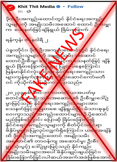 ပဲခူးတိုင်း၊ ဒိုက်ဦးအကျဉ်းထောင်တွင် နိုင်ငံရေးအကျဉ်းသူများကို အမျိုးသမီး အဆောင် ထောင်ဦးစီးမှူး ဒေါ်ဥမ္မာမြင့်က သေနတ်ဖြင့် ချိန်ရွယ်ခြိမ်းခြောက်မှုများ ပြုလုပ်ခဲ့ကြောင်း သတင်းတု၊ သတင်းအမှားများကို တရားမဝင်ပြည်ဖျက်မီဒီယာတစ်ခုဖြစ်သည့် Khit Thit Media က မဟုတ်မမှန်ရေးသားဖြန့်ဝေနေသည်ကို တွေ့ရှိရသည်။