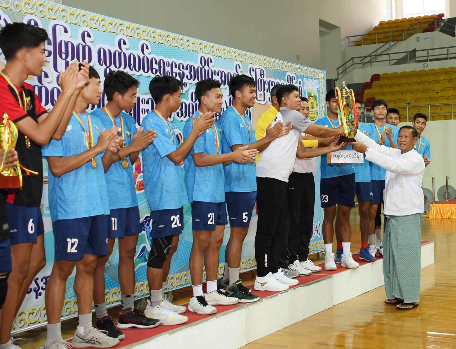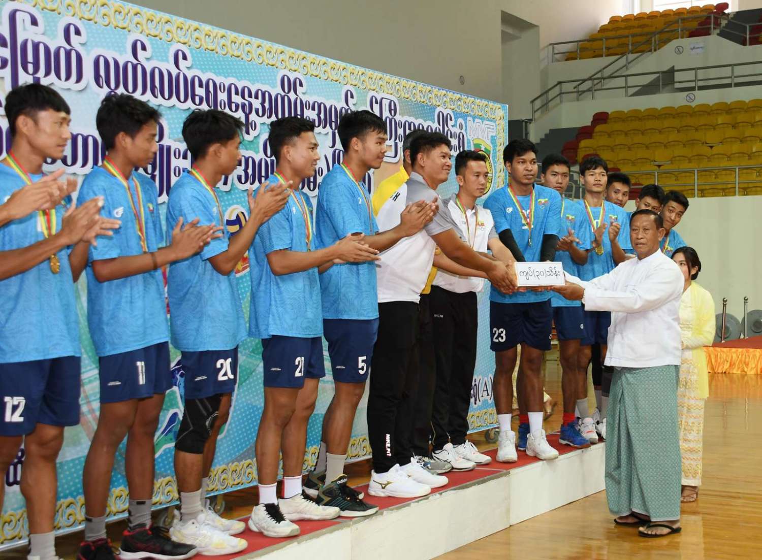 ဆက်လက်၍ နိုင်ငံတော်စီမံအုပ်ချုပ်ရေးကောင်စီအဖွဲ့ဝင် ပိုးရယ်အောင်သိန်း က အမျိုးသားဘော်လီဘောပြိုင်ပွဲတွင် ပထမဆုရရှိသည့် အားကစားနှင့်လူငယ်ရေးရာဝန်ကြီး ဌာနအသင်းအား တစ်ဦးချင်းဂုဏ်ပြုဆုတံဆိပ်များ၊ ဂုဏ်ပြုဆုငွေများနှင့်အတူ တံခွန်စိုက်ဆုဖလားကို ပေးအပ်ချီးမြှင့်သည်။