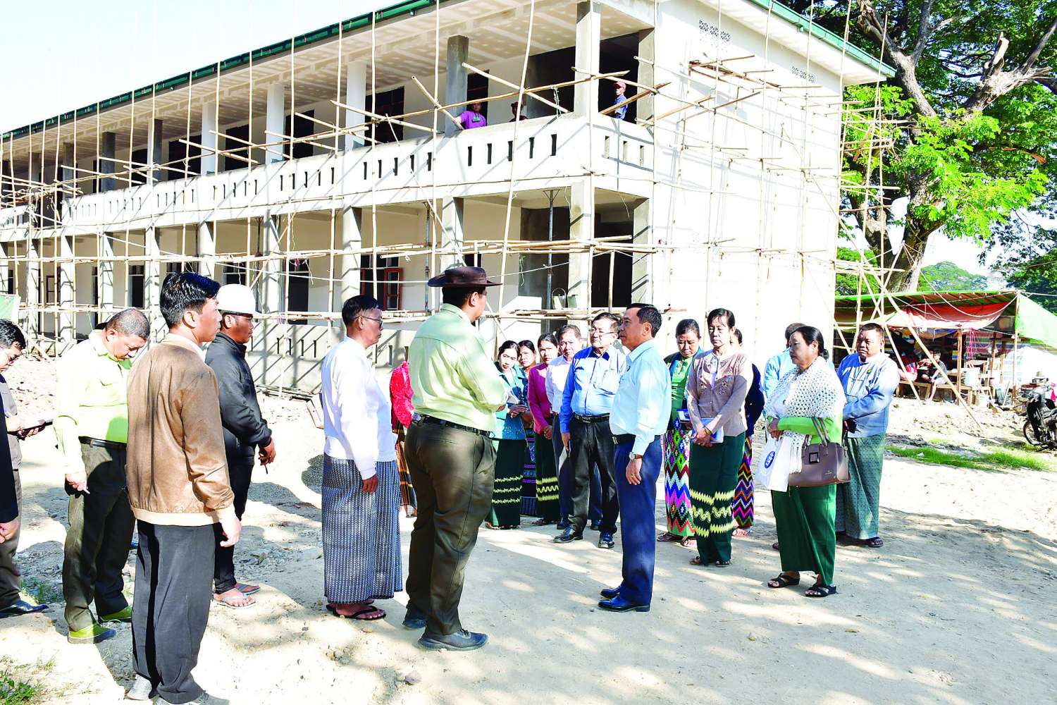 ဆက်လက်၍ နေပြည်တော်ကောင်စီဥက္ကဋ္ဌနှင့်အဖွဲ့သည် ပျဉ်းမနားမြို့နယ် ကန်တော်မင်္ဂလာ ရှမ်းကန်အဆင့်မြှင့်တင်ခြင်းနှင့် လူလျှောက်လမ်းတံတားတည်ဆောက်ခြင်းလုပ်ငန်းများ ဆောင်ရွက်နေမှု၊ ပျဉ်းမနားမြို့နယ် အမှတ်(၁) အခြေခံပညာအထက်တန်းကျောင်းဝင်းအတွင်း စက်မှု၊ စိုက်ပျိုးရေးနှင့် မွေးမြူရေးအထက်တန်းကျောင်းဆောင်သစ် ပေ (၁၄၀x ၃၀) RCC နှစ်ထပ်ကျောင်းဆောင်တည်ဆောက်နေမှုတို့ကို သွားရောက်ကြည့်ရှုစစ်ဆေးပြီး လိုအပ်သည်များကို မှာကြားသည်။