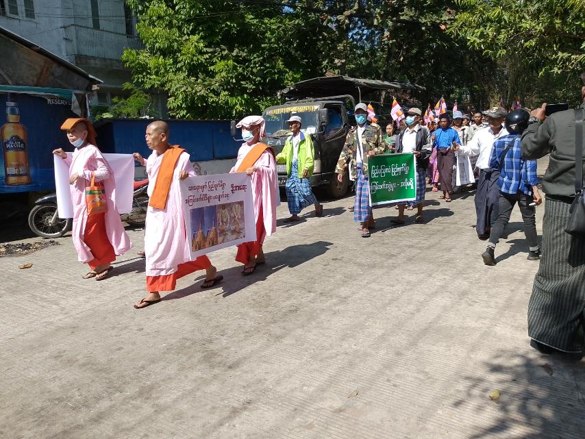 ဧရာဝတီတိုင်းဒေသကြီး၊ ပုသိမ်မြို့တွင် ဗုဒ္ဓဘာသာဝင်များအတွက် အထွတ်အမြတ်ထားရာ စေတီပုထိုးများ၊ ဗုဒ္ဓဆင်းတုတော်များအား ဖျက်ဆီးစော်ကားနေသည့် အကြမ်းဖက်သောင်းကျန်းသူများနှင့် သာသနာဖျက်မိစ္ဆာများအား ကန့်ကွက်ရှုတ်ချပွဲကို ယနေ့နေ့လယ်ပိုင်းက ကျင်းပပြုလုပ်ခဲ့သည်။