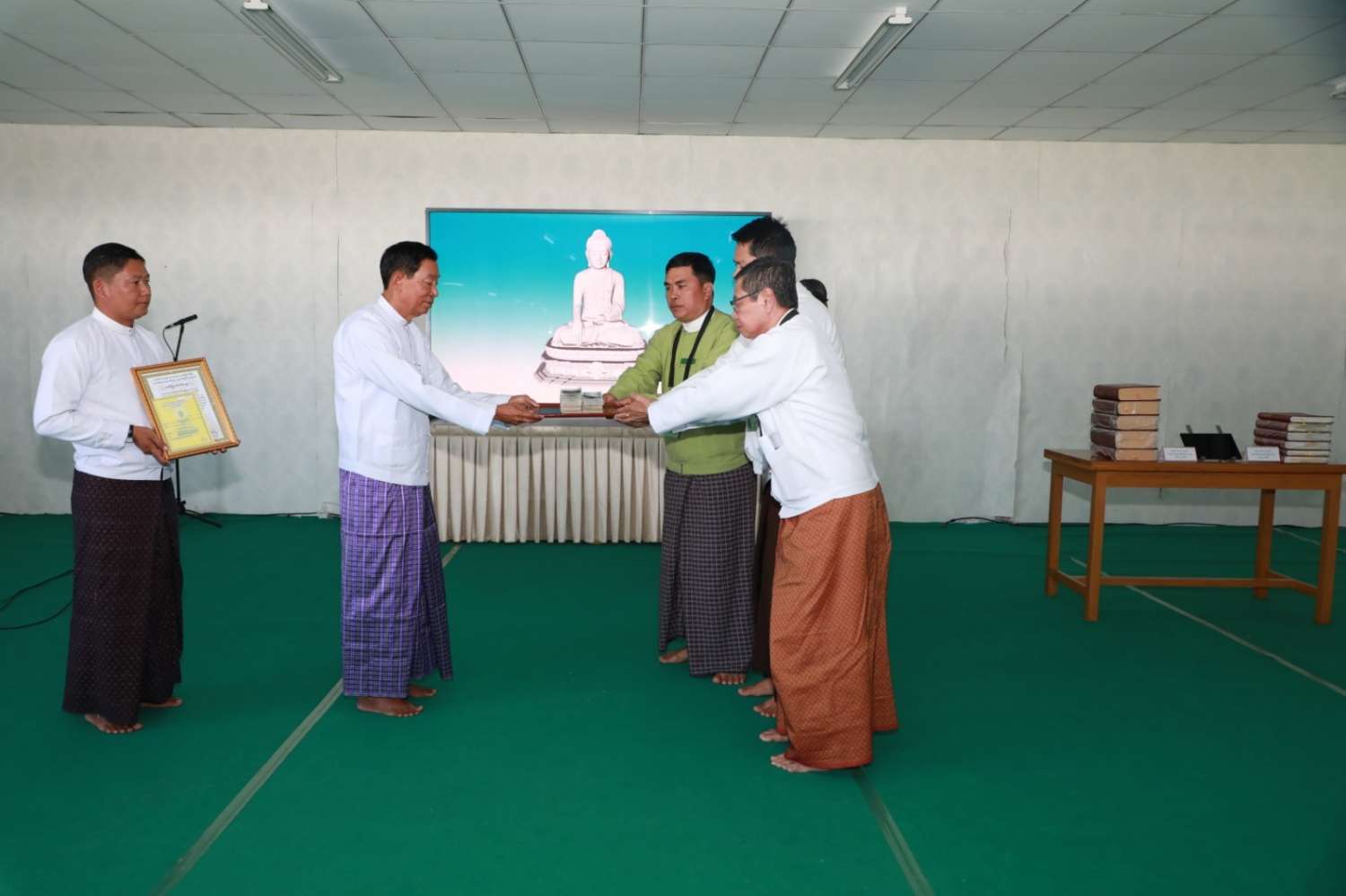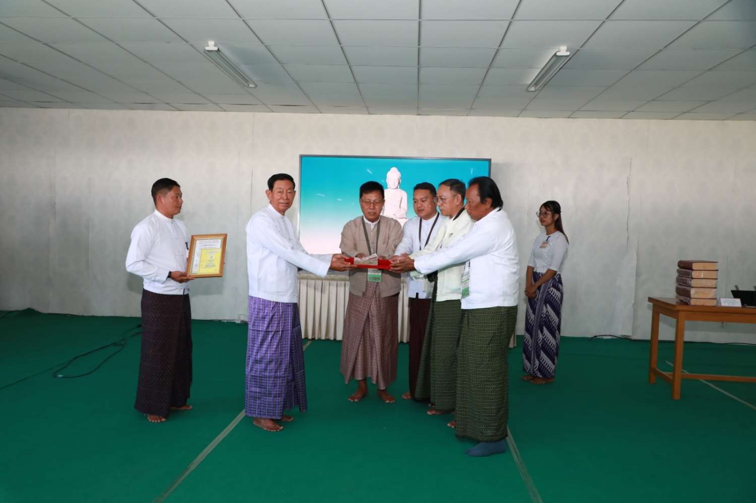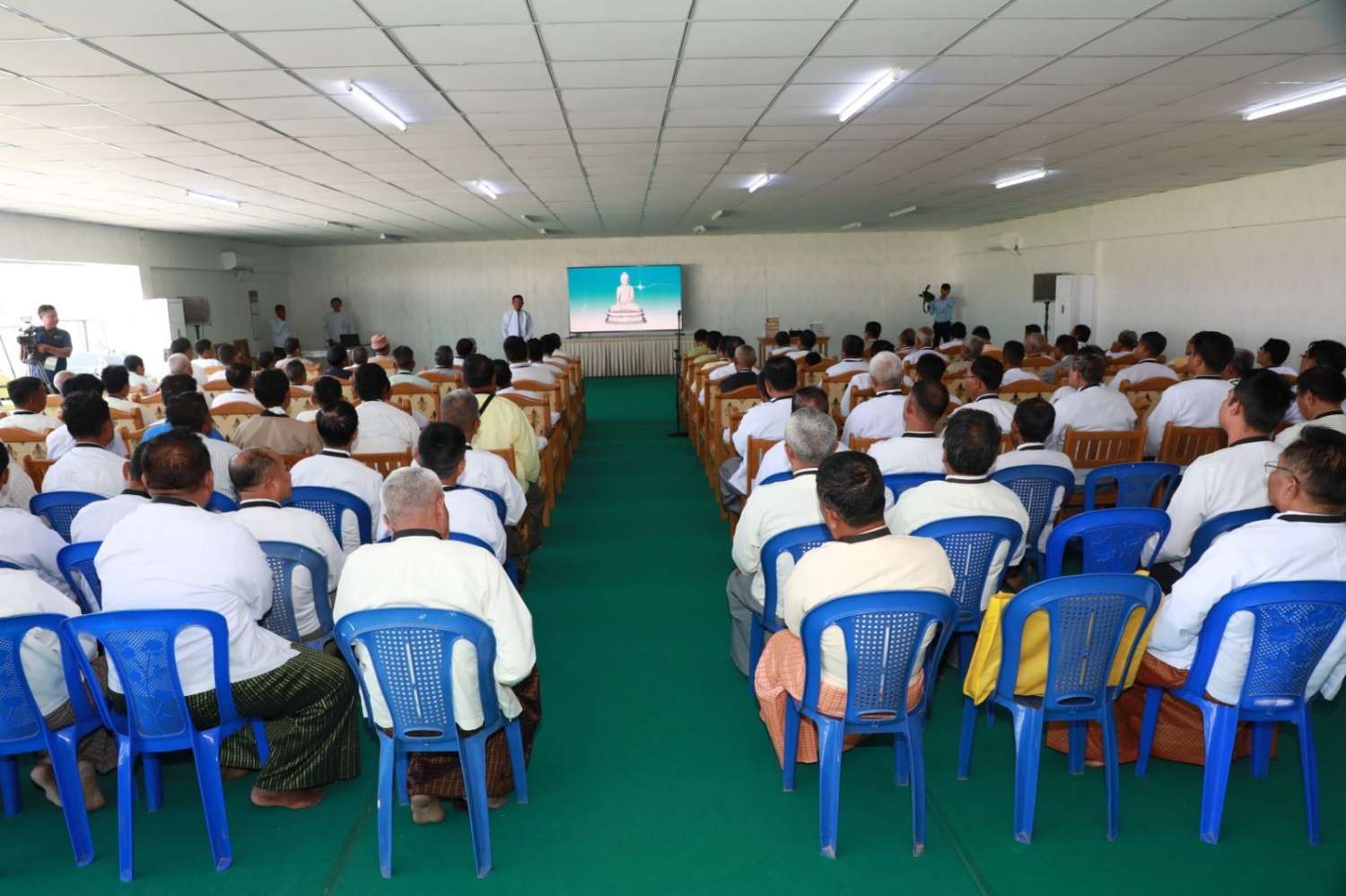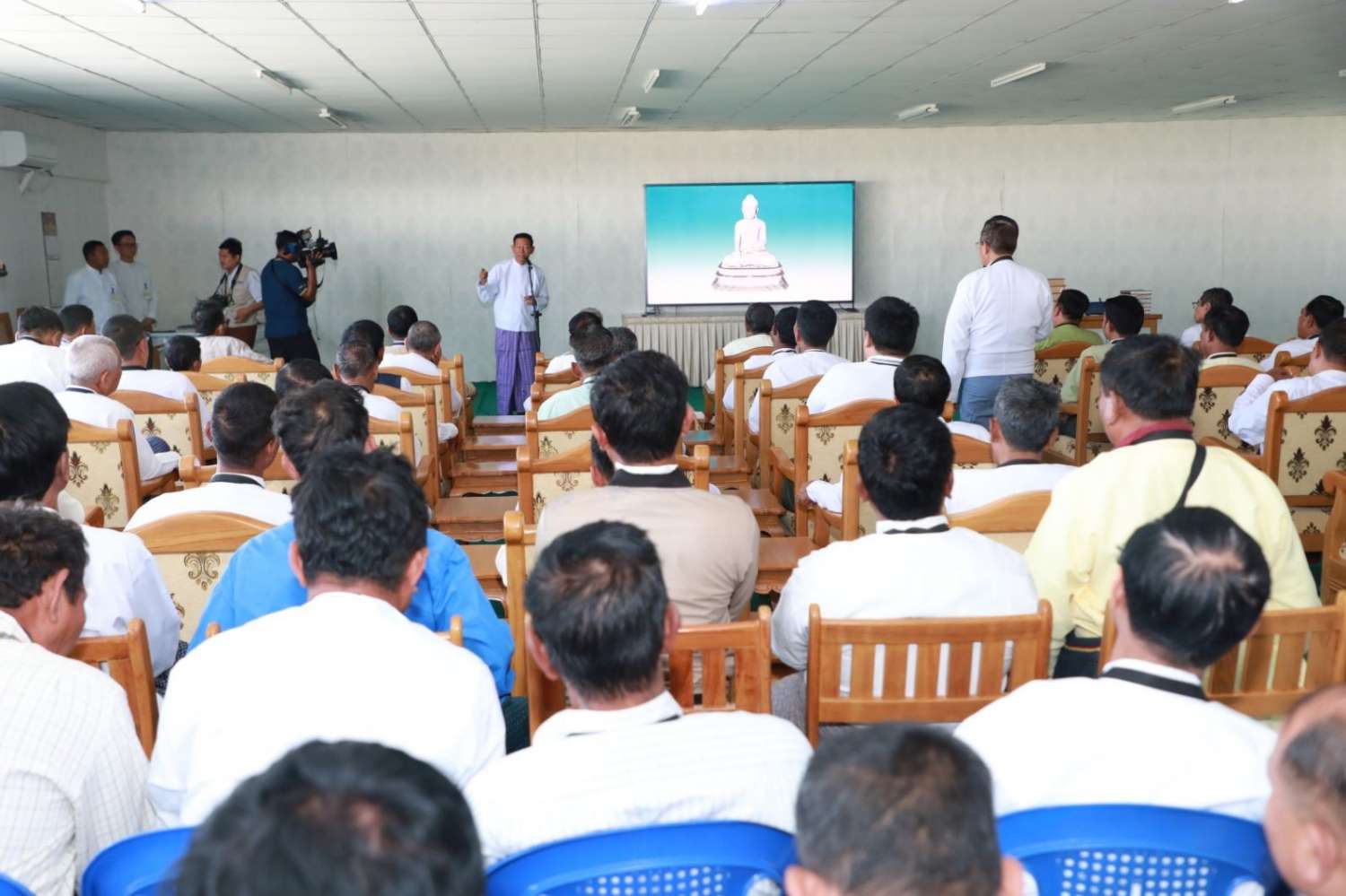 ဦးစွာ ရှင်းလင်းဆောင်၌ မာရဝိဇယဗုဒ္ဓရုပ်ပွားတော်မြတ်ကြီး ဂေါပကအဖွဲ့နှင့် ဗုဒ္ဓရုပ်ပွားတော်မြတ်ကြီး တည်ဆောက်ပူဇော်ခြင်းနှင့် ထိန်းသိမ်းခြင်းလုပ်ငန်းများတွင် ပါဝင်ဆောင်ရွက်ခဲ့ကြသည့် ကျွမ်းကျင်ပညာရှင်များက မာရဝိဇယဘုရားကြီး တည်ထားကိုးကွယ်ပူဇော်ရခြင်း ရည်ရွယ်ချက်၊ ရုပ်ပွားတော်မြတ်ကြီးအား လုပ်ငန်းစဉ်အဆင့်ဆင့်ဖြင့် အောင်မြင်စွာတည်ထား ပူဇော်နိုင်ခဲ့မှု၊ လက်ရှိထိန်းသိမ်းဆောင်ရွက်နေမှု၊ ခေတ်မီစက်ကိရိယာများအသုံးပြု၍ ကျောက်စာရုံစေတီတော်များ တည်ထားဆောင်ရွက်ခဲ့မှုနှင့် သာသနာရေးဆိုင်ရာ အခမ်းအနားကြီးများ စည်ကားသိုက်မြိုက်စွာ ကျင်းပနိုင်ခဲ့မှုအခြေအနေတို့ကို ရှင်းလင်းပြောကြားကြပြီး မာရဝိဇယဗုဒ္ဓရုပ်ပွားတော်မြတ်ကြီး အောင်မြင်စွာ တည်ထားပူဇော်နိုင်ရန် အဆင့်ဆင့်ဆောင်ရွက်ခဲ့မှု ဗီဒီယိုမှတ်တမ်းကိုပြသသည်။