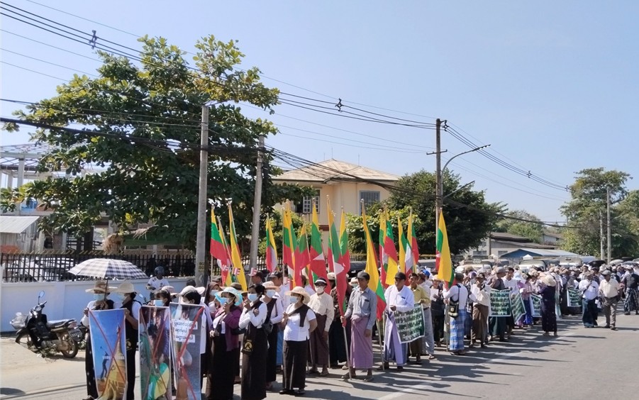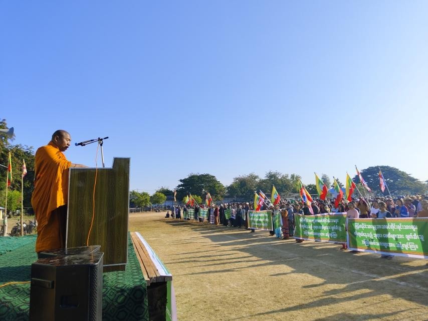 ထိုသို့ပြုလုပ်လျက်ရှိရာ ယနေ့တွင် စစ်ကိုင်းတိုင်းဒေသကြီး၊ ကန့်ဘလူခရိုင်၊ ကျွန်းလှမြို့၌ လည်းကောင်း၊ ဇန်နဝါရီလ ၁၄ ရက်တွင် ပဲခူးတိုင်းဒေသကြီး၊ ပဲခူးမြို့၌လည်းကောင်း အသီးသီး ကျင်းပပြုလုပ်ကြသည်။ ဦးစွာ ကန့်ကွက်ရှုတ်ချပွဲများသို့ တက်ရောက်လာကြသူများသည် သတ်မှတ်နေရာအသီးသီးမှ ချီတက်စုဝေးကြပြီး သံဃာတော်များနှင့် မျိုးချစ်ပြည်သူ ဦးဆောင်သူများက ဗုဒ္ဓဘာသာအပေါ်ဖျက်ဆီးရန် လုပ်ဆောင်နေမှုများကို ကန့်ကွက်ကြောင်း ဟောပြောကြသည်။