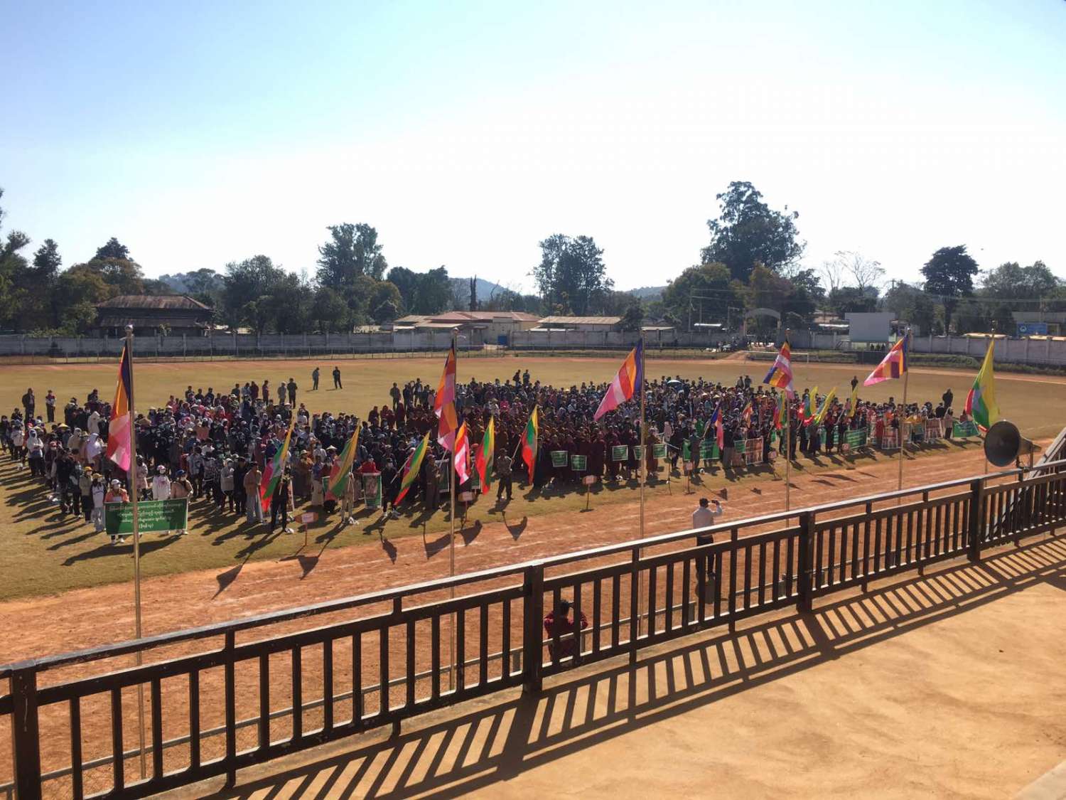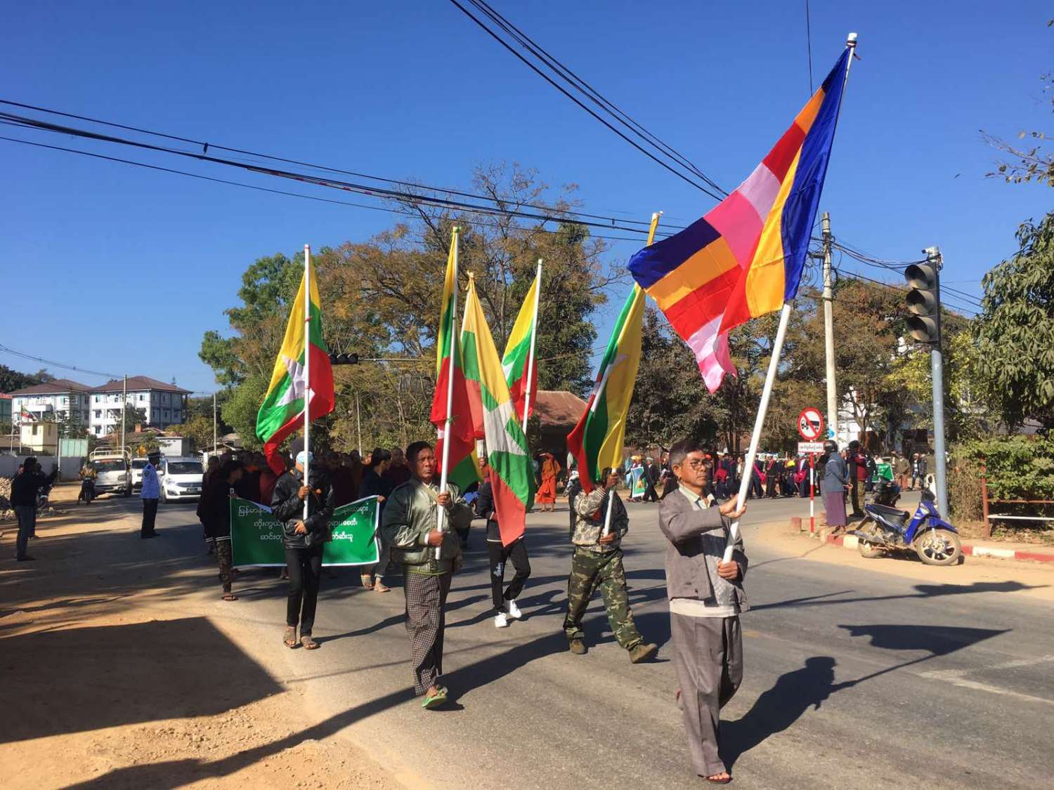 ရှမ်းပြည်နယ်တောင်ပိုင်း၊ လွိုင်လင်ခရိုင်၊ လွိုင်လင်မြို့တွင် ယနေ့နံနက် ၉ နာရီအချိန်က ဗုဒ္ဓဘာသာဝင်များ အထွတ်အမြတ်ထားရာ စေတီပုထိုးများ၊ ဗုဒ္ဓဆင်းတုတော်များအား ဖျက်ဆီး၊ စော်ကားနေသည့် အကြမ်းဖက်သောင်းကျန်းသူများနှင့် သာသနာဖျက်မိစ္ဆာများအား ကန့်ကွက်ရှုတ်ချပွဲကို ခရိုင်ဂေါက်ကွင်းမှ ပြည်ထောင်စုလမ်းမအတိုင်း၊ ၄င်းမှတစ်ဆင့် သုခလမ်း၊ အနောက်ကျောင်းလမ်း၊ လွိုင်လင်-ပင်လုံသွားကားလမ်းမှတဆင့် ပြည်ထောင်စုလမ်းမကြီးအတိုင်း ခရိုင်အားကစားကွင်းသို့ လမ်းလျှောက်စီတန်း လှည့်လည်ခဲ့ကြသည်။