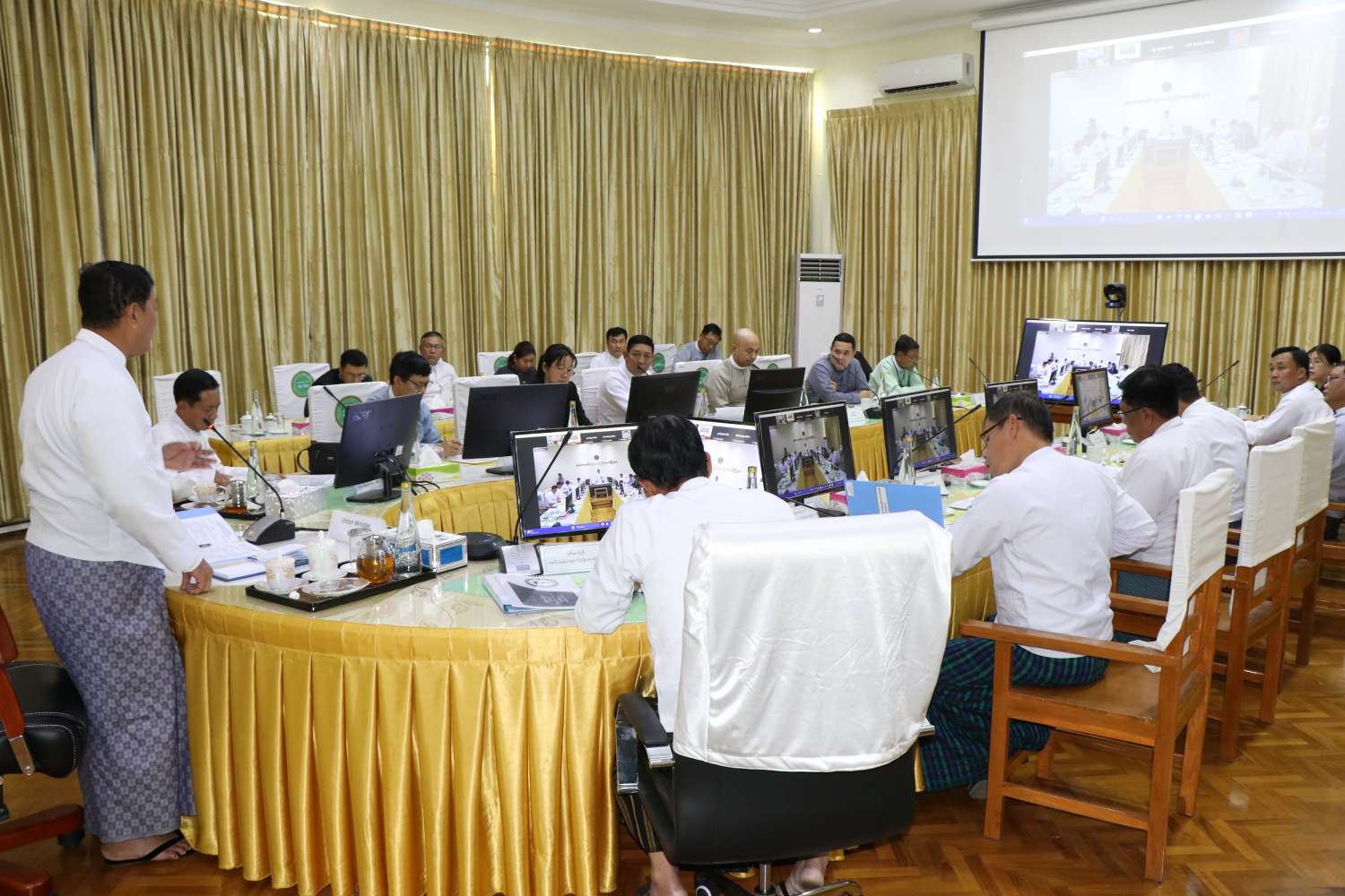 ဆက်လက်၍ ဒုတိယဝန်ကြီး ဒေါက်တာတင်ထွဋ် နှင့် ဒုတိယဝန်ကြီး ဦးမြင့်စိုး တို့က လုပ်ငန်းဆောင်ရွက်နေမှုများအပေါ် လိုအပ်သည်များ ဖြည့်စွက်ရှင်းလင်းဆွေးနွေးကြပြီး ဦးဆောင် ကော်မတီအဖွဲ့ဝင် ဦးစီးဌာနကိုယ်စားလှယ်များက ဝိုင်းဝန်းအကြံပြုရှင်းလင်း ဆွေးနွေးတင်ပြကြသည်။