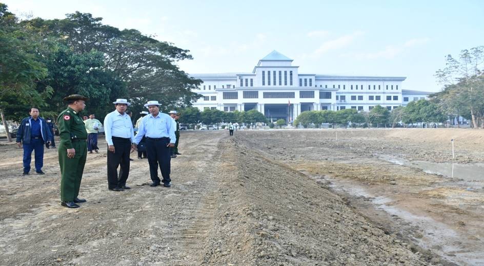 ယင်းနောက် တိုင်းဒေသကြီး ဝန်ကြီးချုပ်နှင့်အဖွဲ့ဝင်များသည် ထန်းတပင်မြို့နယ်၊ ရန်ကုန်အနောက်ပိုင်း တက္ကသိုလ်သို့ သွားရောက်၍ အင်ဂျင်နီယာဌာန (ရေစီးရေလာ စီမံခန့်ခွဲမှု)မှ ပင်မလေးထပ်ဆောင်ရှေ့ အရှည် ၆၆၅ပေ ၊အကျယ် ၁၁၀ ပေ၊ အနက် ၈ ပေရှိ ရေကန်အား တူးဖော်ခြင်းလုပ်ငန်းဆောင်ရွက်နေမှုနှင့် အဓိပတိ(၂)လမ်းနှင့် စံကားဝါဆောင်အကြား ကွင်းပြင်နေရာအား မြေပြုပြင်ပြီး ကွင်းပတ်လည်တွင် အကျယ် ၅ ပေ၊ အနက် ၅ပေရှိ ရေမြောင်းတူးဖော်နေမှုတို့ကို ကြည့်ရှုစစ်ဆေးပြီး မိုးတွင်းကာလရေကြီးရေလျှံမှု မဖြစ်ပေါ်စေရန်နှင့် တက္ကသိုလ်ဝင်းအတွင်း ရေဝပ်မှုမရှိစေရေး အလေးထားဆောင်ရွက်ရန်၊ ရေကန်ပတ်ဝန်းကျင် စိမ်းလန်းစိုပြေရေး ပန်းအလှပင်များ စိုက်ပျိုးရန်၊ ကန်တူးဖော်ရာမှ ထွက်ရှိလာသည့် မြေသားများအား ကန်ပတ်ဝန်းကျင်ရှိ မြေနိမ့်နေရာများတွင် ဖို့ပြီး မြေညှိပြုပြင်၍ မြေယာရှုခင်းဆောင်ရွက်ရန်၊ ရေကန်အတွင်း ရေဖြည့်သွင်းနိုင်ရန် အင်ဂျင်နီယာဌာန (ရေနှင့်သန့်ရှင်းမှု)မှ အဝီစိတွင်းများ တူးဖော်နေမှုနှင့် ၈ လက်မ အဝီစိ(၂)တွင်းနှင့် ရေကန်အတွင်းရှိ အလှဆင် ရေပန်း(၃)ခု မောင်းနှင်ရန် လျှပ်စစ်ဓာတ်အား ၅၀ ကီလိုဝပ် ထုတ်လုပ်နိုင်မည့် Solar System နေရောင်ခြည် စွမ်းအင်သုံး ဓာတ်အားပေးစက် တပ်ဆင်ရန် မြေပြုပြင်ဆောင်ရွက်နေမှု လုပ်ငန်းများအား ကြည့်ရှုစစ်ဆေးကာ နေရောင်ခြည်ကောင်းစွာ ရရှိစေရေး အုပ်မိုးသစ်ကိုင်းများအား ရှင်းလင်းရန်နှင့် လုပ်ငန်းများ အချိန်မီပြီးစီးအောင် ဆောင်ရွက်ရန် မှာကြားပြီး လိုအပ်သည်များ ပေါင်းစပ်ညှိနှိုင်းဖြည့်ဆည်း ဆောင်ရွက် ပေးခဲ့ကြောင်း သတင်းရရှိသည်။
