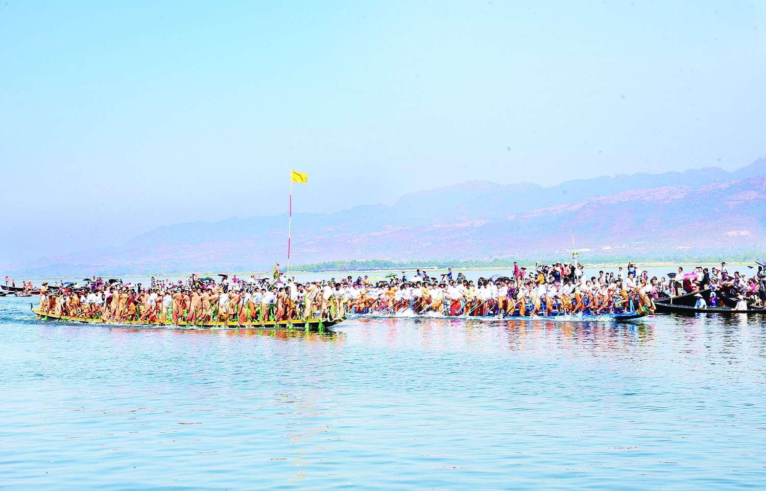 (၇၇) နှစ်မြောက် ရှမ်းပြည်နယ်နေ့ကို ဂုဏ်ပြုသောအားဖြင့် အင်းသားရိုးရာလှေလှော်ပြိုင်ပွဲကို ယမန်နေ့က ညောင်ရွှေမြို့နယ် အင်းလေးကန်၌ ကျင်းပပြုလုပ်ရာ နိုင်ငံတော်စီမံအုပ်ချုပ်ရေးကောင်စီအဖွဲ့ဝင်များဖြစ်ကြသည့် ဒေါက်တာဘရွှေနှင့် ခွန်စံလွင်၊ ပြည်ထောင်စုဝန်ကြီးများဖြစ်ကြသည့် ဦးမင်းသိန်းဇံ၊ ဒေါက်တာစိုးဝင်း၊ Jeng Phang နော်တောင်၊ ရှမ်းပြည်နယ်အစိုးရအဖွဲ့ဝန်ကြီးချုပ် ဦးအောင်အောင်၊ မြန်မာနိုင်ငံဆိုင်ရာ တရုတ်သံရုံးမှ သံမှူးကြီး ဒေါက်တာကျန်းကျိ ဟုန်၊ ဒုတိယဝန်ကြီးများဖြစ်ကြသည့် ဒေါက်တာဇော်မြင့်၊ ဒေါက်တာအေးထွန်း၊ ဦးဇော်အေးမောင်၊ ပြည်နယ်အစိုးရအဖွဲ့ဝင် ဝန်ကြီးများ၊ ဖိတ်ကြားထားသူများနှင့် ဒေသခံတိုင်းရင်းသား ညီအစ်ကိုမောင်နှမများ တက်ရောက်ကြသည်။