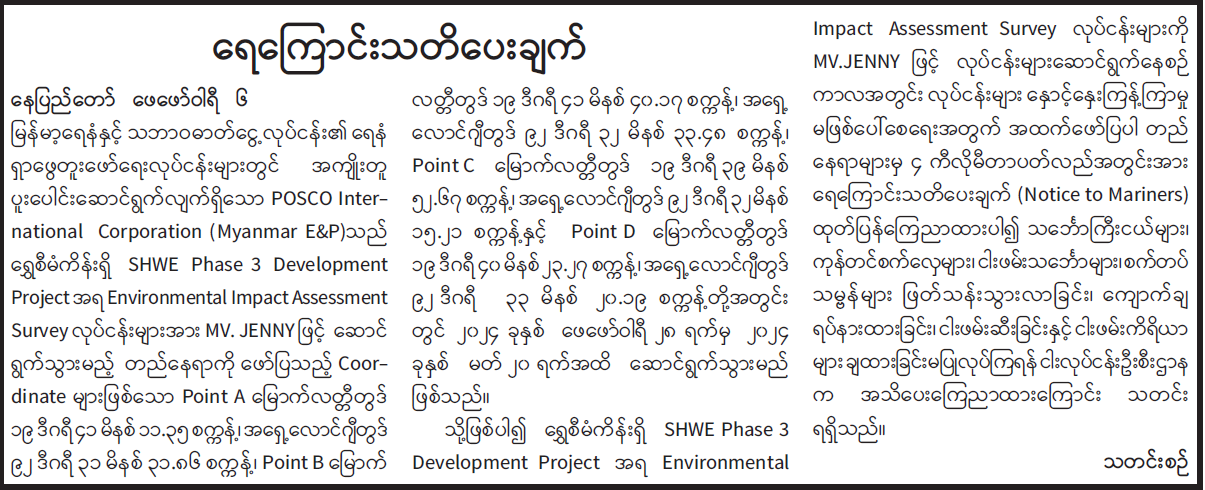 ဦးစီးဌာနနှင့် လုပ်ငန်းများ၏ ကြေညာချက်များ