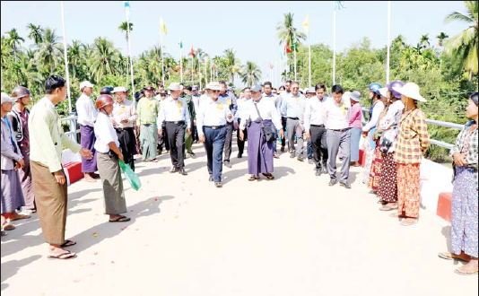 ထို့နောက် ပြည်ထောင်စုဝန်ကြီး၊ တိုင်းဒေသကြီးဝန်ကြီးချုပ်၊ တိုင်းဒေသကြီးလုံခြုံရေးနှင့် နယ်စပ်ရေးရာဝန်ကြီး၊ အမြဲတမ်းအတွင်းဝန်နှင့် ညွှန်ကြားရေးမှူးချုပ်တို့က ကျေးရွာချင်းဆက် တံတားသစ်ကို ဖဲကြိုးဖြတ်ဖွင့်လှစ်ပေးခဲ့ကြပြီး တံတားအား ဖြတ်သန်းကြည့်ရှုကြသည်။