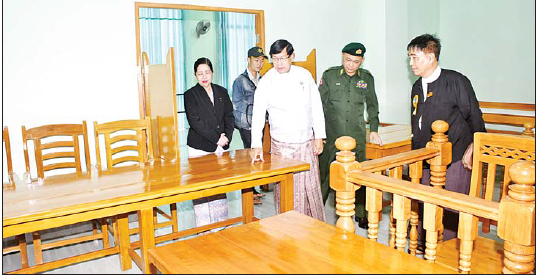 ဆက်လက်၍ တိုင်းဒေသကြီးဝန်ကြီးချုပ်၊ တိုင်းမှူးနှင့် တိုင်းဒေသကြီးတရားလွှတ်တော် တရား သူကြီးချုပ်တို့သည် မြို့နယ်တရား ရုံးဆိုင်းဘုတ်အားစက်ခလုတ်နှိပ်ဖွင့်လှစ်ပေးကြပြီး အမွှေးနံ့သာရည်များဖြင့် ပက်ဖျန်းပေးကြကာ အဆောက်အအုံသစ်အတွင်း လှည့်လည်ကြည့်ရှုကြသည်။