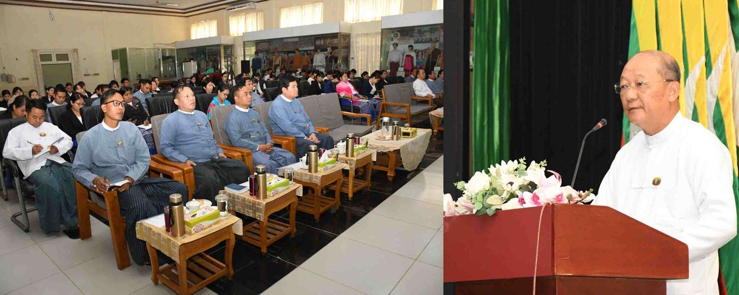 ဦးစွာ ပြည်ထောင်စုဝန်ကြီးက သင်တန်းသူ သင်တန်းသားများအနေဖြင့် မိမိတို့၏ ဌာနဆိုင်ရာလုပ်ငန်းတာဝန်များနှင့်ပတ်သက်၍ အတွေ့အကြုံရှိပြီး အရည်အသွေးနှင့် အရည်အချင်းပြည့်ဝကာ လုပ်ငန်းစွမ်းဆောင်ရည်မြင့်မားပြီး ကျွမ်းကျင်သူပညာရှင်များ ဖြစ်လာရန်လိုအပ်ကြောင်း၊ မိမိတို့ တာဝန်ထမ်းဆောင်နေသည့် နေရာဒေသနှင့် တိုင်းဒေသကြီးနှင့် ပြည်နယ် ဖွံ့ဖြိုးတိုးတက်ရေးအတွက် အားကောင်းလာစေရန် ကျရာအခန်းကဏ္ဍမှ ဝိုင်းဝန်းဆောင်ရွက် ပေးကြရမည် ဖြစ်ကြောင်း၊ မိမိတို့ဌာန၏ မူဝါဒ၊ လုပ်ငန်းစဉ်၊ စည်းမျဉ်းစည်းကမ်း၊ ဥပဒေ၊ လုပ်ထုံးလုပ်နည်းများကို စနစ်တကျ သိရှိထားမှသာ လုပ်ငန်းများဆောင်ရွက်ရာတွင်ဖြစ်စေ၊ ပြည်သူများကို ဝန်ဆောင်မှုပေးရာတွင်ဖြစ်စေ၊ ပြည်သူတို့၏ ရပိုင်ခွင့်အခွင့်အလမ်းများကို အထောက်အကူပြုပေးရာတွင်ဖြစ်စေ ထိရောက်စွာ ဆောင်ရွက်လာနိုင်မည်ဖြစ်ကြောင်း ပြောကြား သည်။