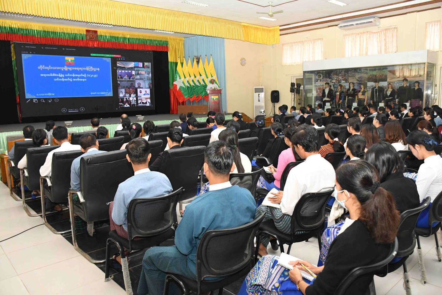 အခမ်းအနားသို့ တိုင်းရင်းသားလူမျိုးများရေးရာဝန်ကြီးဌာန ပြည်ထောင်စုဝန်ကြီး Jeng Phang နော်တောင်၊ အမြဲတမ်းအတွင်းဝန်၊ ညွှန်ကြားရေးမှူးချုပ်များ၊ ဒုတိယအမြဲတမ်းအတွင်းဝန်၊ ဒုတိယညွှန်ကြားရေးမှူးချုပ်များ၊ သင်တန်းသား၊ သင်တန်းသူများနှင့် အရာထမ်း၊ အမှုထမ်းများ တက်ရောက်ကြပြီး တိုင်းဒေသကြီးနှင့် ပြည်နယ်ညွှန်ကြားရေးမှူးရုံးများနှင့် ပြည်ထောင်စုတိုင်းရင်းသားကျေးရွာ (ရန်ကုန်) မှ သင်တန်းသား၊ သင်တန်းသူများက အွန်လိုင်းဖြင့် တက်ရောက်ကြသည်။