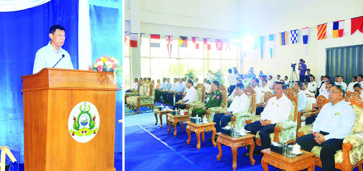 အခမ်းအနား၌ နိုင်ငံတော်စီမံအုပ်ချုပ်ရေးကောင်စီအဖွဲ့ဝင်၊ ဒုတိယဝန်ကြီးချုပ်နှင့် ပို့ဆောင်ရေးနှင့်ဆက်သွယ်ရေးဝန်ကြီးဌာန ပြည်ထောင်စုဝန်ကြီးဗိုလ်ချုပ်ကြီး မြထွန်းဦးက အမှာစကားပြောကြားရာတွင် ယနေ့သည် မိမိတို့ပို့ဆောင်ရေးနှင့်ဆက်သွယ်ရေးဝန်ကြီးဌာန၊ မြန်မာ့ဆိပ်ကမ်းအာဏာပိုင်က ဆောင်ရွက်လျက်ရှိသော ဆိပ်ကမ်းဝန်ဆောင်မှုလုပ်ငန်းများတွင် ပိုမိုဘေးကင်းလုံခြုံသည့် ဝန်ဆောင်မှုကောင်းများ ပေးနိုင်ရန်အားသစ်လောင်းသည့် နေ့တစ်နေ့ဖြစ်ပါကြောင်း။ ပင်လယ်ရေကြောင်းပို့ဆောင်ရေးကဏ္ဍသည် နိုင်ငံ၏အပြည်ပြည်ဆိုင်ရာ ကုန်သွယ်မှုအခန်းကဏ္ဍနှင့် တိုက်ရိုက်ချိတ်ဆက်မှုရှိနေပြီး နိုင်ငံ့လူမှုစီးပွားဘဝဖွံ့ဖြိုးတိုးတက်ရေးအတွက် လွန်စွာအရေးပါကြောင်းကို တွေ့ရမည်ဖြစ်ပါကြောင်း၊ ကုန်သွယ်မှုနည်းလမ်းများအနက် ပင်လယ်ရေကြောင်းဖြင့် ကုန်သွယ်မှုသည် ကမ္ဘာ့ကုန်သွယ်မှုတန်ဖိုး၏ ၇၀% နှင့် ကမ္ဘာ့ကုန်သွယ်မှု ပမာဏ၏ ၈၀% ရှိကြောင်းကို United Nation Conference on Trade and Development (UNCTAD)က နှစ်စဉ်ထုတ်ပြန်သည့် Review of Maritime Transport အရ သိရှိရပါကြောင်း၊ ပို့ဆောင်ရေးနှင့်ဆက်သွယ်ရေးဝန်ကြီးဌာနအနေဖြင့် မြန်မာ့ဆိပ်ကမ်းအာဏာပိုင်၏ ဆိပ်ကမ်းလုပ်ငန်းများနှင့် ရေကြောင်းပြလုပ်ငန်းများတွင် ပိုမိုကောင်းမွန်သည့်ဝန်ဆောင်မှုများ ပေးနိုင်စေရေးအတွက် ခေတ်မီရေယာဉ် အသစ် (၈) စီးကို စုစုပေါင်းအမေရိကန်ဒေါ်လာ ၂၀.၆၇သန်း အကုန်အကျခံကာတည်ဆောက်၍ ရေယာဉ်အင်အား ဖြည့်တင်းဆောင်ရွက်စေခဲ့ခြင်းဖြစ်ပါကြောင်း၊ ဆိပ်ကမ်းလုပ်ငန်းကဏ္ဍတွင် Stakeholder များဖြစ်ကြသော မြန်မာ့ဆိပ်ကမ်းအာဏာပိုင်နှင့် ပုဂ္ဂလိကဆိပ်ကမ်းတံတားများက မိမိတို့၏ဝန်ဆောင်မှုစနစ်နှင့် စွမ်းဆောင်ရည်ကို နိုင်ငံတကာကုန်သွယ်မှုအတွက် လိုအပ်ချက်စံချိန်စံညွှန်းများနှင့် လိုက်လျောညီထွေ အဆင်သင့်ဖြစ်စေရန် အဆင့်မြှင့်တင်ခြင်း၊ စဉ်ဆက်မပြတ်ပြောင်းလဲ တိုးတက်နေသည့် နည်းပညာနှင့်စက်ကိရိယာများကို တပ်ဆင်အသုံးချခြင်း၊ ဒေသတွင်းခေတ်မီဆိပ်ကမ်းများနည်းတူ ဒစ်ဂျစ်တယ်အသွင်ကူးပြောင်းခြင်း (Digital Transformation) နည်းလမ်းဖြင့် Electronic Port(e-Port) အဆင့်မှသည် Smart Port အဆင့်သို့ တက်လှမ်းနိုင်စေရေးအတွက် နိုင်ငံတော်နှင့်ဝန်ကြီးဌာန၏ ဦးဆောင်ပံ့ပိုးမှုများနှင့်အတူ အားလုံးဝိုင်းဝန်းကြိုးပမ်း အကောင်အထည်ဖော်ဆောင်ရွက်သွားရန် ပြောကြားပါသည်။