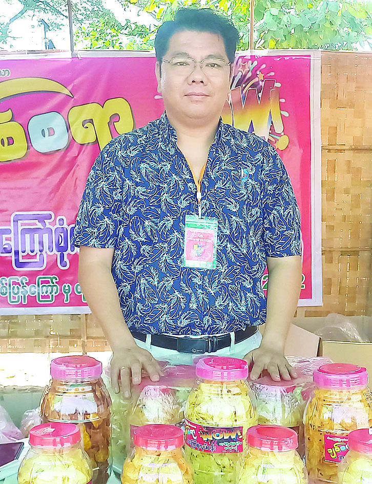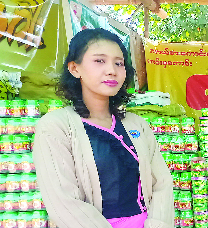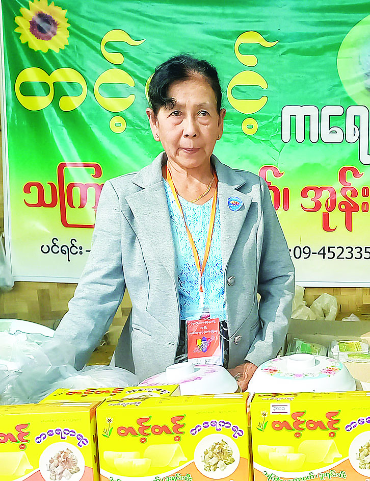 ပဲခူးမြို့ ကျောက်ကြီးစုရပ်ကွက်က လာရောက်ရောင်းချတာဖြစ်ပါတယ်။ နိုင်ငံတော်အစိုးရရဲ့ ပံ့ပိုးကူညီမှုကြောင့် ထုတ်ကုန်ပိုမိုထုတ်လုပ်လာနိုင်ခဲ့သလို လုပ်ငန်းပိုမိုအောင်မြင်ပြီး လူသိများကာ ရောင်းအားလည်း ပိုမိုကောင်းလာပါတယ်။ MSMEs ဒေသထုတ်ကုန်ပြပွဲတွေမှာ လိုက်လံရောင်းချတာ ၁၀ ကြိမ် ရှိပါပြီ။ အခုလို ဒေသထုတ်ကုန်လုပ်ငန်းတွေ ဖွံ့ဖြိုးတိုးတက်ရေး ပံ့ပိုးကူညီပေးတဲ့ နိုင်ငံတော်အကြီးအကဲကိုလည်း ကျေးဇူးတင်ပါတယ်။