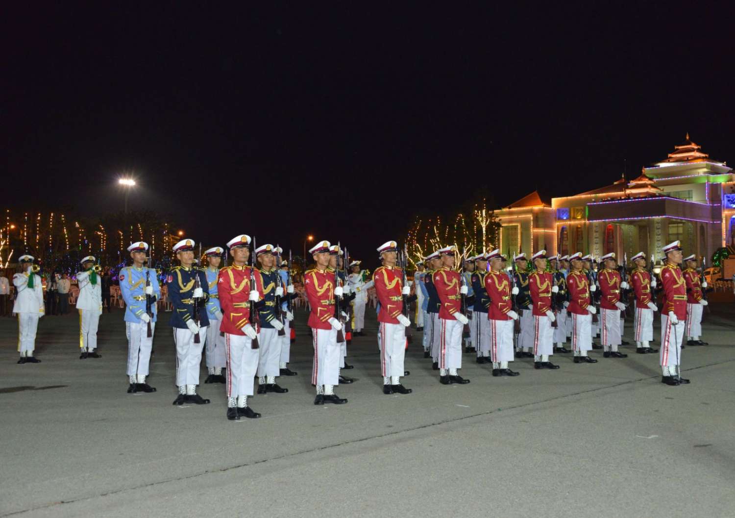နိုင်ငံတော်အလံအလေးပြုပွဲ အခမ်းအနားကို နံနက် ၇ နာရီတွင် ကျင်းပရာ တပ်မတော် (ကြည်း၊ ရေ၊ လေ) ဂုဏ်ပြုတပ်ဖွဲ့က မြို့တော်ခန်းမ ဥပစာရင်ပြင်သို့ ချီတက်နေရာယူသည်။