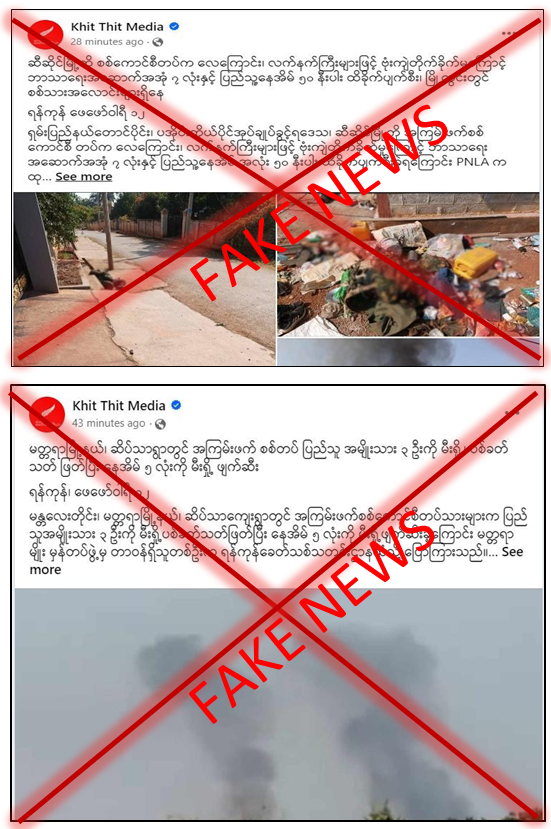 အလားတူ မတ္တရာမြို့နယ်၊ ဆိပ်သာရွာတွင် တပ်မတော်က ယနေ့မနက်ပိုင်း၌ အမျိုးသား ၃ ဦးကို မီးရှို့သတ်ဖြတ်ပြီး နေအိမ် ၅ လုံးကို မီးရှို့ဖျက်ဆီးခဲ့သည်ဟု လူမှုကွန်ရက်ပေါ်တွင် မဟုတ်မမှန်ရေးသား ဖြန့်ဝေလျက်ရှိပြီး သက်ဆိုင်ရာ နယ်မြေလုံခြုံရေးတာဝန်ရှိသူတစ်ဦး၏ ပြောကြားချက်အရ ယနေ့တွင် ဆိပ်သာရွာသို့ တပ်မတော်စစ်ကြောင်းသွားလာမှုမရှိကြောင်းနှင့် ရွာသား ၃ ဦးနှင့် နေအိမ်များအား မီးရှို့ဖျက်ဆီးခဲ့သည်ဆိုသည့် သတင်းမှာလည်း သတင်းမှားသာဖြစ်ကြောင်း သိရှိရပြီး အကြမ်းဖက်အားပေးပြည်ဖျက်မီဒီယာ Khit Thit မှ မဟုတ်မမှန်သတင်းများကို လုပ်ကြံရေးသား ဝါဒဖြန့်နေခြင်းသာဖြစ်ကြောင်း သတင်းရရှိသည်။
