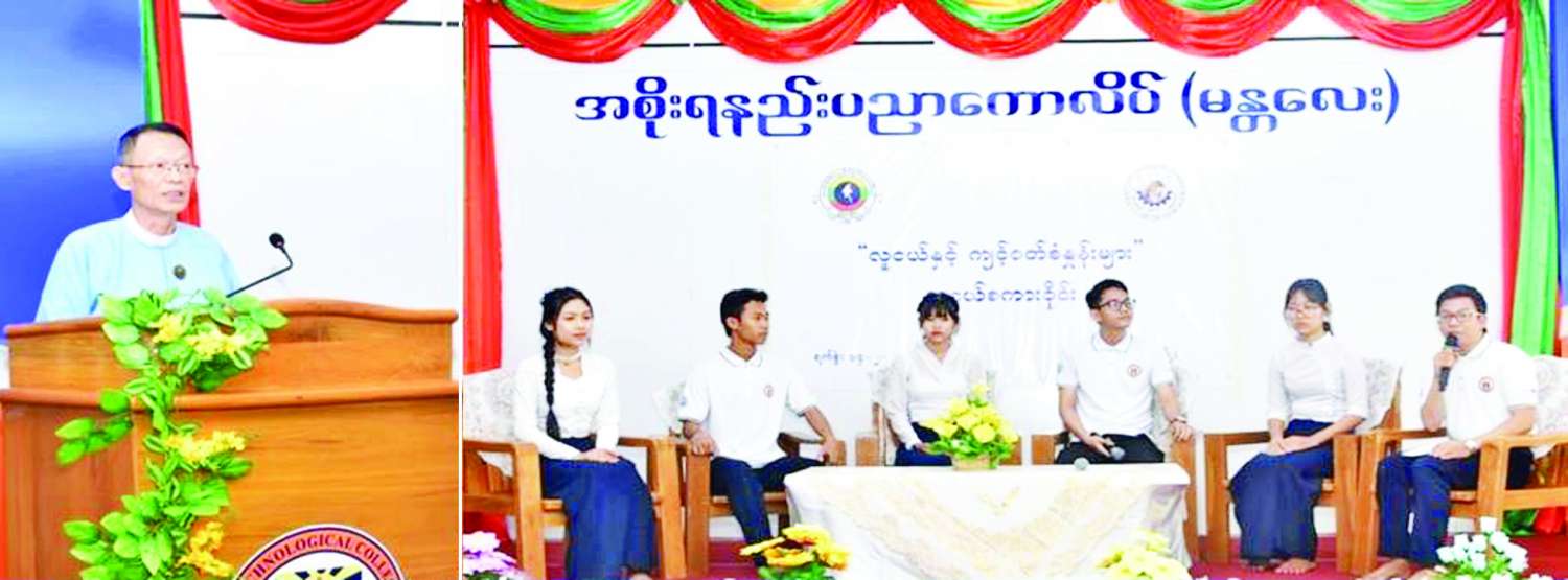 ဆက်လက်၍ “လူငယ်နှင့် ကျင့်ဝတ်စံနှုန်းများ” ခေါင်းစဉ်ဖြင့် လူငယ်စကားဝိုင်း ဆွေးနွေးပွဲကို ကျင်းပပြီး အစိုးရနည်းပညာ ကောလိပ် (မန္တလေး) မှ ကျောင်းသား ကျောင်းသူများက ၎င်းတို့သိရှိလိုသည်များကို မေးမြန်းခဲ့ရာ ဆွေးနွေးသူများအဖြစ် ပါဝင်ဆောင်ရွက်ကြသည့် ကျောင်းသား ကျောင်းသူများက ရင်းနှီးပွင့်လင်းစွာ ပြန်လည်ဖြေကြားသည်။