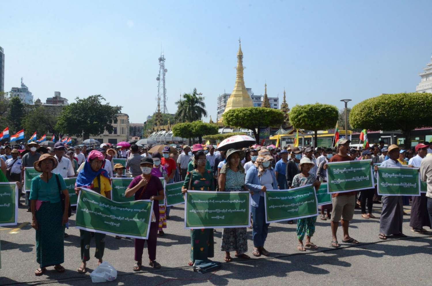 ဦးစွာ သက်ဆိုင်ရာမြို့နယ်များမှ ဒေသခံမျိုးချစ်ပြည်သူများက သတ်မှတ်နေရာအသီးသီးတွင် "ပြည်သူ့စစ်မှုထမ်းဥပဒေအား အပြည့်အဝ ထောက်ခံကြိုဆိုပါသည်။ နိုင်ငံတော်အား ပြည်တွင်း/ပြည်ပ အန္တရာယ်များမှကာကွယ်ရေး တစ်မျိုးသားလုံးစစ်မှုထမ်းဆောင်စို့။ ဒို့တာဝန်အရေးသုံးပါးကို ကာကွယ်စောင့်ရှောက်ရန်အတွက် တစ်မျိုးသားလုံး စစ်ပညာသင်ကြားရန်နှင့် စစ်မှုထမ်းဆောင်ရန်တာဝန်ရှိသည်။ ပြည့်အင်အားသည် ပြည်တွင်း မှာသာရှိနေဖို့ စစ်ပညာသင်ကြစို့။" အစရှိသည့်ပိုစတာများကိုင်ဆောင်ပြီး ကွင်းအတွင်း နေရာယူခဲ့ကြသည်။