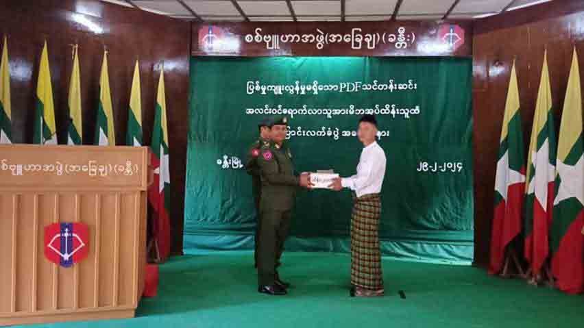 ဦးစွာ သက်ဆိုင်ရာတပ်နယ်များမှ တာဝန်ရှိသူများက နယ်မြေဒေသတည်ငြိမ်အေးချမ်းရေးနှင့် တရားဥပဒေဆိုင်ရာပုဒ်မများကို အသီးသီးရှင်းလင်းဆွေးနွေး ပြောကြားကြသည်။ ထို့နောက် ဥပဒေဘောင်အတွင်း ဝင်ရောက်လာသော ပြစ်မှုကျူးလွန်ခြင်းမရှိသည့် စစ်ကိုင်းတိုင်းဒေသကြီး၊ တမူးမြို့၊ ခန္တီးမြို့၊ ဖောင်းပြင်မြို့၊ ကလေးမြို့၊ မုံရွာမြို့နှင့် မကွေးတိုင်းဒေသကြီး၊ ပခုက္ကူမြို့တို့မှ PDF အဖွဲ့ဝင် အမျိုးသား ၁၀ ဦး နှင့် အမျိုးသမီး ၂ ဦးတို့သည် ၎င်းတို့နှင့် အတူပါလာသည့် MK-12 အမျိုးအစား မောင်းပြန်ရိုင်ဖယ်(၁)လက်၊ Stalliom PA-100 Short Gun အမျိုးအစား မောင်းပြန်ရိုင်ဖယ်(၁)လက်နှင့် KUZAY-GN 19 အမျိုးအစား ပစ္စတို(၁)လက်တို့အား အပ်နှံကြရာ တာဝန်ရှိသူများက လက်ခံရယူကြပြီး MK-12 အမျိုးအစား မောင်းပြန်ရိုင်ဖယ်(၁)လက်အတွက် ဆုကြေးငွေကျပ်သိန်း(၄၀)၊ Stalliom PA-100 Short Gun အမျိုးအစား မောင်းပြန်ရိုင်ဖယ်(၁)လက်အတွက် ဆုကြေးငွေကျပ်သိန်း(၄၀)၊ KUZAY-GN 19 အမျိုးအစား ပစ္စတို(၁)လက်အတွက် ကျပ်သိန်း(၂၀)၊ တိုင်းဒေသကြီးအစိုးရအဖွဲ့မှ အလင်းဝင်ရောက်လာသူ ၁၂ ဦးအတွက် ၁ ဦးလျှင် ဆုကြေးငွေကျပ်သိန်း(၂၀)၊ စုစုပေါင်းကျပ်သိန်း(၃၄၀)နှင့် ထောက်ပံ့ပစ္စည်းများ၊ စားသောက်ဖွယ်ရာများအား ပေးအပ်ရာ ဥပဒေဘောင်အတွင်း ပြန်လည်ဝင်ရောက်လာသူများမှ အသီးသီးလက်ခံရယူကြပြီး အလင်းဝင်ရောက်လာသူတစ်ဦးက ကျေးဇူးတင်စကား ပြန်လည်ပြောကြားသည်။ ၎င်းနောက် အလင်းဝင်ရောက်လာသူများနှင့် တက်ရောက်လာကြသူများအား စားသောက်ဖွယ်ရာများဖြင့် တည်ခင်းဧည့်ခံကျွေးမွေးပြီး အလင်းဝင်ရောက်လာသူများအား အသိအမှတ်ပြုကဒ်ပြားများပေးအပ်ကာ ဝန်ခံကတိလက်မှတ်ရေးထိုးစေ၍ ၎င်းတို့၏ မိဘအုပ်ထိန်းသူများထံသို့ လွှဲပြောင်းပေးအပ်ခဲ့ကြသည်။