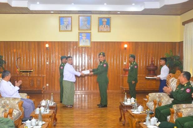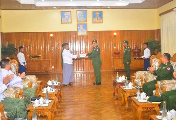 ထိုသို့ပေးအပ်လျက်ရှိရာ ယနေ့တွင် သာသနာရေးနှင့်ယဉ်ကျေးမှုဝန်ကြီးဌာနနှင့် ပညာရေးဝန်ကြီးဌာနတို့မှ ဝန်ထမ်းမိသားစုများက ဂုဏ်ပြုချီးမြှင့်ငွေပေးအပ်ခြင်းကို နေပြည်တော်တိုင်းစစ်ဌာနချုပ်ရှိ ပေါင်းလောင်းရိပ်သာ၌ပြုလုပ်ရာ သာသနာရေးနှင့်ယဉ်ကျေးမှုဝန်ကြီးဌာန ပြည်ထောင်စုဝန်ကြီး ဦးတင်ဦးလွင်၊ ပညာရေးဝန်ကြီးဌာန ပြည်ထောင်စုဝန်ကြီး ဒေါက်တာညွန့်ဖေ၊ တိုင်းမှူး ဗိုလ်ချုပ် စောသန်းလှိုင်နှင့် ဝန်ကြီးဌာနများမှ ဒုတိယဝန်ကြီးများနှင့် တိုင်းစစ်ဌာနချုပ်မှ တာဝန်ရှိသူများ တက်ရောက်ကြသည်။ ထို့နောက် သာသနာရေးနှင့်ယဉ်ကျေးမှုဝန်ကြီးဌာနမှ ဝန်ထမ်းမိသားစုများက ပေးအပ်လှူဒါန်းသည့် ဂုဏ်ပြုချီးမြှင့်ငွေ ကျပ်သိန်း ၁၀၀ အားလည်းကောင်း၊ ပညာရေးဝန်ကြီးဌာနမှ ဝန်ထမ်းမိသားစုများက ပေးအပ်လှူဒါန်းသည့် ဂုဏ်ပြုချီးမြှင့်ငွေ ကျပ်သိန်း ၁၂၀ အားလည်းကောင်း သာသနာရေးနှင့်ယဉ်ကျေးမှုဝန်ကြီးဌာန ပြည်ထောင်စုဝန်ကြီးနှင့် ပညာရေးဝန်ကြီးဌာန ပြည်ထောင်စုဝန်ကြီးတို့က တိုင်းမှူးထံ အသီးသီးဂုဏ်ပြုပေးအပ်သည်။ ယင်းနောက် တိုင်းမှူးက ဂုဏ်ပြုမှတ်တမ်းလွှာပြန်လည်ပေးအပ်ပြီး ကျေးဇူးတင်စကား ပြန်လည်ပြောကြားခဲ့သည်။