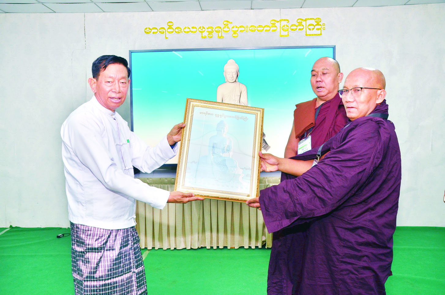 ထို့နောက် ဦးဆောင်ဘုရားဒါယကာ နိုင်ငံတော်စီမံအုပ်ချုပ်ရေးကောင်စီဥက္ကဋ္ဌ နိုင်ငံတော်ဝန်ကြီးချုပ် ဗိုလ်ချုပ်မှူးကြီး မင်းအောင်လှိုင်၏ လမ်းညွှန်မှုအရ ဘုရားဂေါပကအဖွဲ့မှ တာဝန်ရှိသူတစ်ဦးက ဦးရေ ၁ ဒသမ ၅ သန်းမြောက် ဘုရားဖူးဖြစ်သည့် ဆရာတော် ဦးပညောဘာသအား ဉာဏ်တော် ၉ လက်မ အမြင့်ရှိသော စကျင်ကျောက်ဖြင့် ထုဆစ်ထားသည့် မာရဝိဇယဗုဒ္ဓရုပ်ပွားတော်မြတ်ကြီး ပုံတော်တူဆင်းတုတော်တစ်ဆူ၊ မာရဝိဇယဗုဒ္ဓရုပ်ပွားတော်မြတ်ကြီး (၁၂ လက်မ × ၁၈ လက်မ) မှန်ပေါင်သွင်းဓာတ်ပုံတစ်ပုံတို့ကို အမှတ်တရဓမ္မလက်ဆောင်အဖြစ် ဂုဏ်ပြုဆက်ကပ်ကြောင်း သိရှိရသည်။