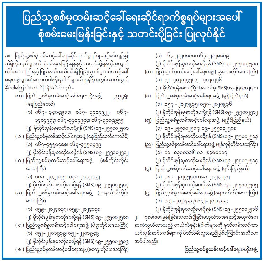 ပြည်သူ့စစ်မှုထမ်းဆင့်ခေါ်ရေးဆိုင်ရာ ကိစ္စရပ်များအပေါ် စုံစမ်းမေးမြန်းခြင်းနှင့် သတင်းပို့ခြင်း ပြုလုပ်နိုင် 03/26/2024