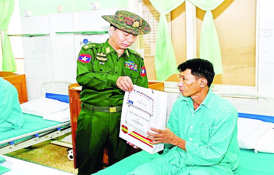 အလားတူ ရှမ်းပြည်နယ် (တောင်ပိုင်း) ခိုလမ်မြို့နှင့် တောင်ကြီးမြို့တို့ရှိ နယ်မြေခံဆေးတပ်ရင်း၊ ရန်ကုန်တိုင်းဒေသကြီး မင်္ဂလာဒုံမြို့နယ်ရှိ တပ်မတော်အရိုးရောဂါအထူးကု ဆေးရုံကြီး (ခုတင်-၅၀၀) နှင့် တပ်မတော်ဆေးရုံကြီး (ခုတင်- ၁၀၀၀)၊ စစ်ကိုင်းတိုင်းဒေသကြီး ကလေးမြို့ရှိ တပ်မတော်ဆေးရုံ၊ ပဲခူးတိုင်းဒေသကြီး တောင်ငူမြို့နှင့် ပြည်မြို့ရှိ တပ်မတော်ဆေးရုံတို့၌ တက်ရောက်ဆေးကုသမှုခံယူနေသော အရာရှိ၊ စစ်သည်၊ မိသားစုဝင်များ၊ မြန်မာနိုင်ငံရဲတပ်ဖွဲ့ဝင်များ၊ ပြည်သူ့စစ် (ဌာနေ) တပ်ဖွဲ့ဝင်များ၊ စစ်မှုထမ်းဟောင်း အဖွဲ့ဝင်များနှင့် ဒေသခံပြည်သူများအား ယနေ့တွင် တိုင်းစစ်ဌာနချုပ်အသီးသီးမှ တိုင်းမှူးများနှင့်တာဝန်ရှိသူများက သွားရောက်ကြည့်ရှု၍ တစ်ဦးချင်း၏ ရောဂါဖြစ်ပွားမှု၊ ဆေးဝါးကုသပေးထားမှုနှင့် ကျန်းမာရေးတိုးတက်ကောင်းမွန်မှု အခြေအနေများကို ရင်းရင်းနှီးနှီး မေးမြန်းအားပေးစကားပြောကြားပြီး အာဟာရဖြည့် စားသောက်ဖွယ်ရာများနှင့် ထောက်ပံ့ငွေများပေးအပ်ကြသည်။