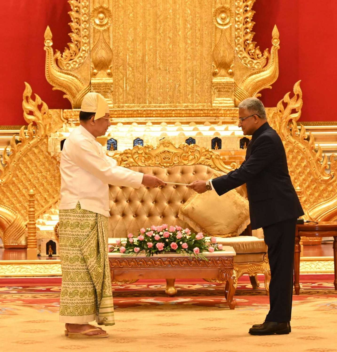 နိုင်ငံတော်စီမံအုပ်ချုပ်ရေးကောင်စီဥက္ကဋ္ဌ နိုင်ငံတော်ဝန်ကြီးချုပ် ဗိုလ်ချုပ်မှူးကြီး မင်းအောင်လှိုင်ထံ မြန်မာနိုင်ငံဆိုင်ရာ အိန္ဒိယနိုင်ငံသံအမတ်ကြီးအဖြစ် ခန့်အပ်ရန် သဘောတူညီပြီးဖြစ်သော သံအမတ်ကြီး H.E. Mr. Abhay Thakur သည် ယနေ့နံနက် ၁၀ နာရီတွင် နေပြည်တော်ရှိ နိုင်ငံတော်စီမံအုပ်ချုပ်ရေးကောင်စီဥက္ကဋ္ဌရုံး၊ သံတမန်ဆောင်ဧည့်ခန်းမ၌ ၎င်း၏ သံအမတ်ခန့်အပ်လွှာကိုပေးအပ်သည်။