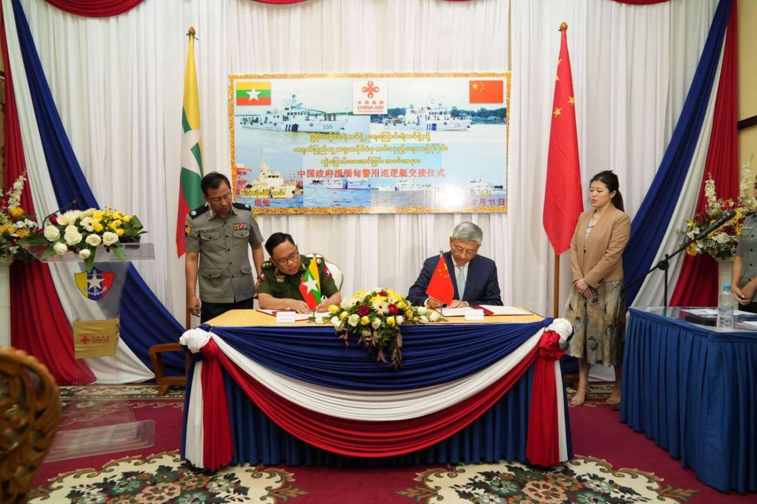 တရုတ် - မြန်မာ ဆွေမျိုးပေါက်ဖော်ချစ်ကြည်ရေးနှင့် အိမ်နီးချင်းကောင်းဆက်ဆံရေးတို့အပေါ် အခြေပြု၍လည်းကောင်း၊ မြန်မာနိုင်ငံရဲတပ်ဖွဲ့၊ ရေကြောင်းရဲတပ်ဖွဲ့၏ တရားဥပဒေစိုးမိုးရေးလုပ်ငန်းစဉ်များ အားကောင်းစေရေးအတွက်လည်းကောင်း ၂၈ မီတာ ကင်းလှည့်ရေယာဉ် ၂ စီးနှင့် ၄၈ မီတာ ကင်းလှည့်ရေယာဉ် ၄ စီးတို့ကို အကူအညီပေးအပ်ခြင်းဖြစ်ကြောင်း သတင်းရရှိသည်။